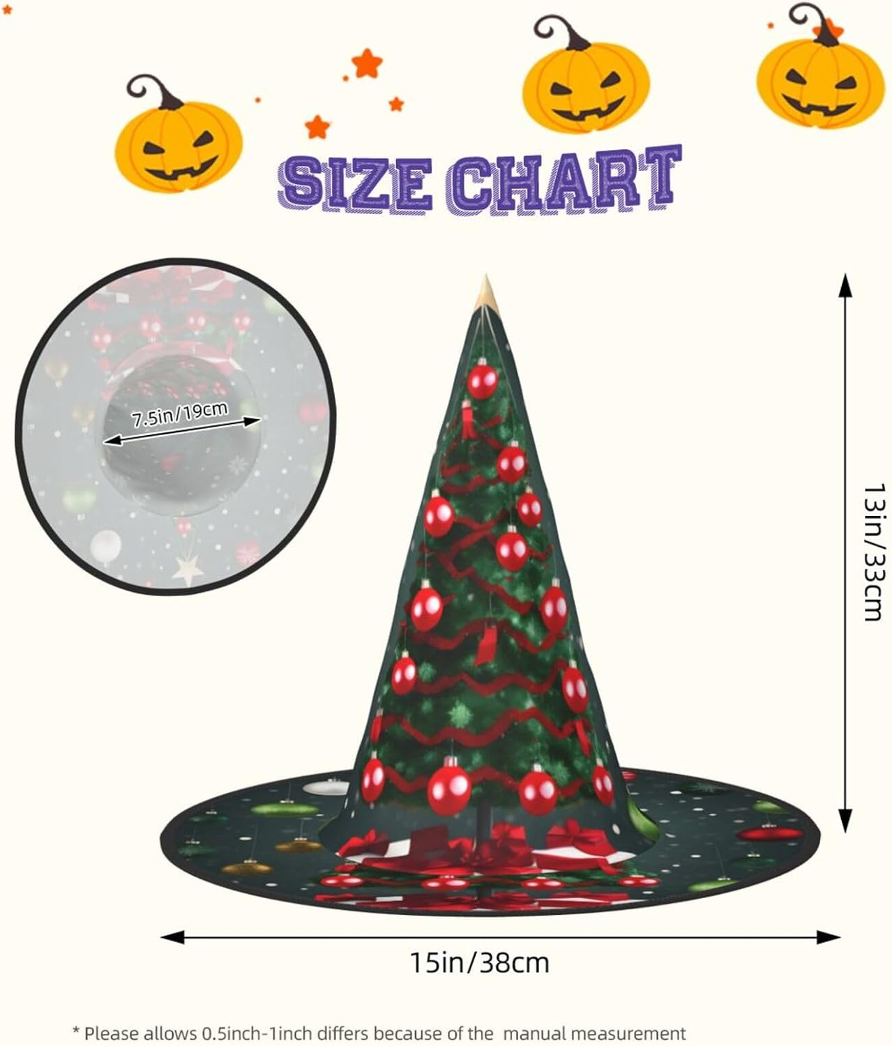 Realizzati in tessuto confortevole, morbido e Oxford, questi cappelli con stampa albero di Natale e palla sono ideali per Halloween e feste in costume. Il design unico e leggero consente di piegare e torcere le falde del cappello, offrendo una facile conservazione e portabilità. Con una dimensione che si adatta alla maggior parte, questi cappelli di Halloween con stampa albero di Natale e palla per uomini e donne sono ideali per carnevale, balli in maschera ed eventi di ruolo. Diventa il centro dell'attenzione in qualsiasi riunione! Inoltre, i nostri cappelli da strega sono facili da pulire: lavare a mano o in lavatrice, asciugare rapidamente e non richiedono candeggina. Festeggia Halloween con stile con i nostri cappelli da strega con albero di Natale e palla!
