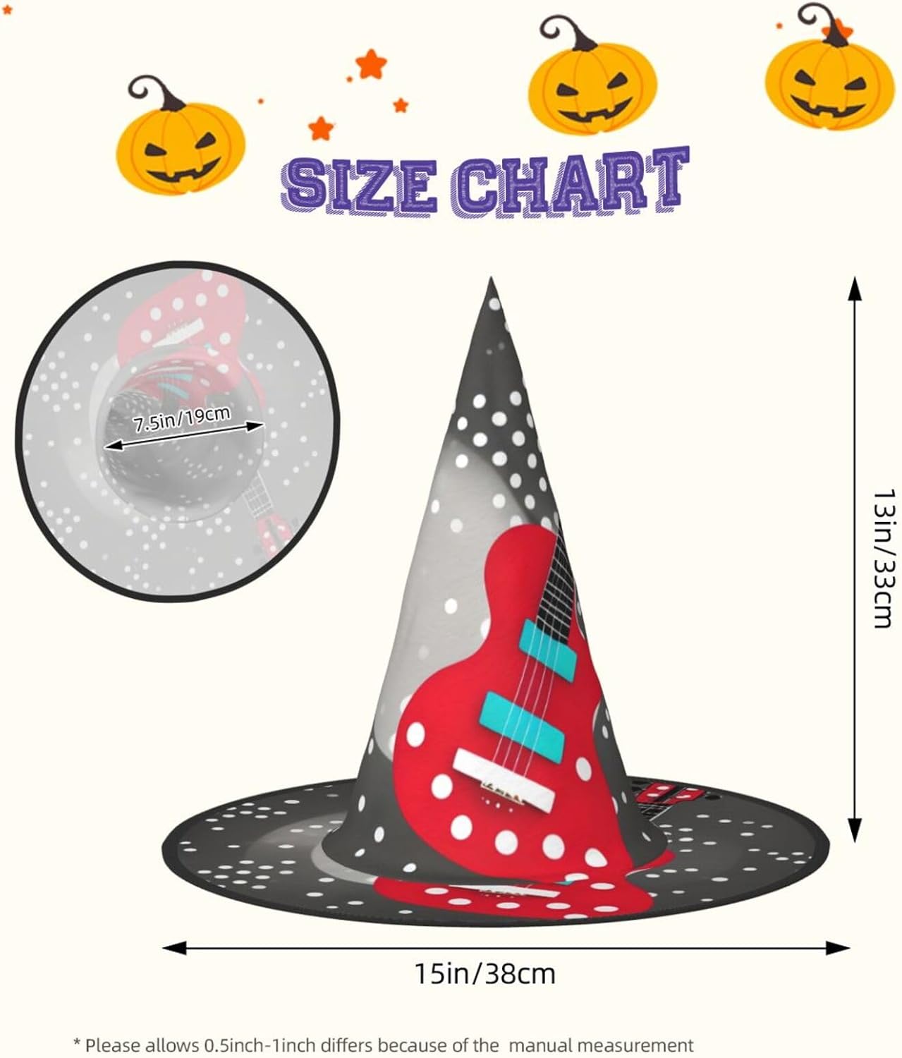 Realizzati in comodo tessuto Oxford, questi cappelli con stampa di note musicali a pois promettono una vestibilità aderente e un uso duraturo. Con un design unico, questi cappelli con stampa di note musicali a pois possono essere serrati, attorcigliati e piegati secondo le tue esigenze, aggiungendo un pizzico di stile e convenienza al tuo enssemble di Halloween. Progettati per adattarsi alla maggior parte delle persone, questi cappelli con stampa di note musicali a pois sono facili da trasportare per feste di Halloween, carnevale, feste in maschera ed eventi cosplay. Essendo lavabili in lavatrice e a mano, questi cappelli richiedono una cura minima. Evitare l'uso di candeggina per il lavaggio.