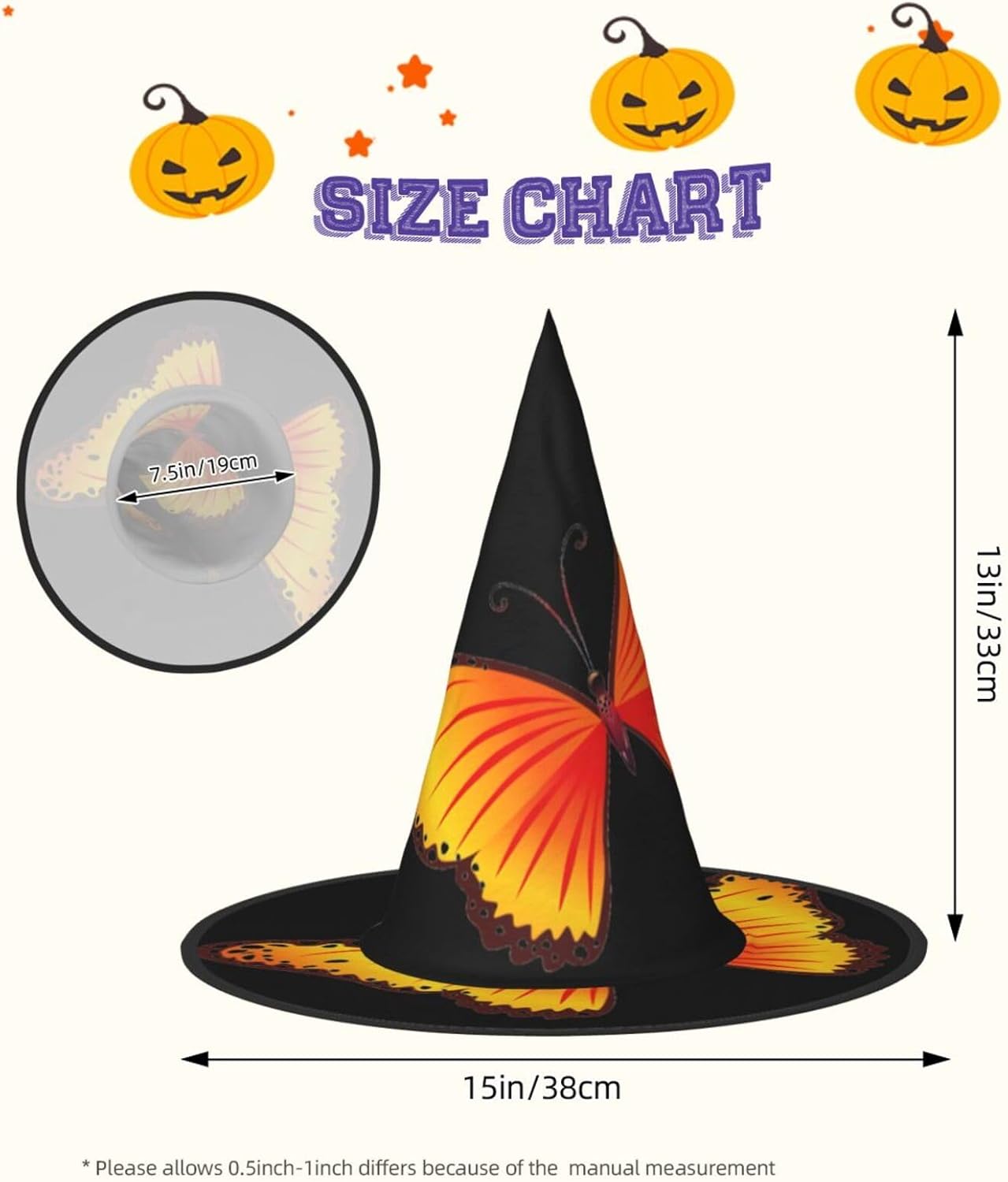 Realizzati in comodo tessuto Oxford, questi graziosi cappelli con stampa a farfalla promettono una vestibilità aderente e un uso duraturo. Con un design unico, questi graziosi cappelli con stampa a farfalla possono essere serrati, attorcigliati e piegati secondo le tue esigenze, aggiungendo un pizzico di stile e convenienza al tuo enssemble di Halloween. Progettati per adattarsi alla maggior parte delle persone, questi graziosi cappelli con stampa a farfalla sono facili da trasportare per feste di Halloween, carnevale, feste in maschera ed eventi cosplay. Essendo lavabili in lavatrice e a mano, questi cappelli richiedono una cura minima. Evitare l'uso di candeggina per il lavaggio.