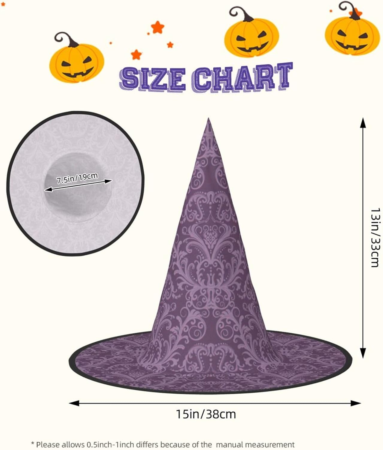Realizzati in comodo tessuto Oxford, questi cappelli con stampa viola promettono una vestibilità aderente e un uso duraturo. Con un design unico, questi cappelli con stampa viola possono essere serrati, attorcigliati e piegati secondo le tue esigenze, aggiungendo un pizzico di stile e convenienza al tuo enssemble di Halloween. Progettati per adattarsi alla maggior parte delle persone, questi cappelli con stampa viola sono facili da trasportare per feste di Halloween, carnevale, feste in maschera ed eventi cosplay. Essendo lavabili in lavatrice e a mano, questi cappelli richiedono una cura minima. Evitare l'uso di candeggina per il lavaggio.