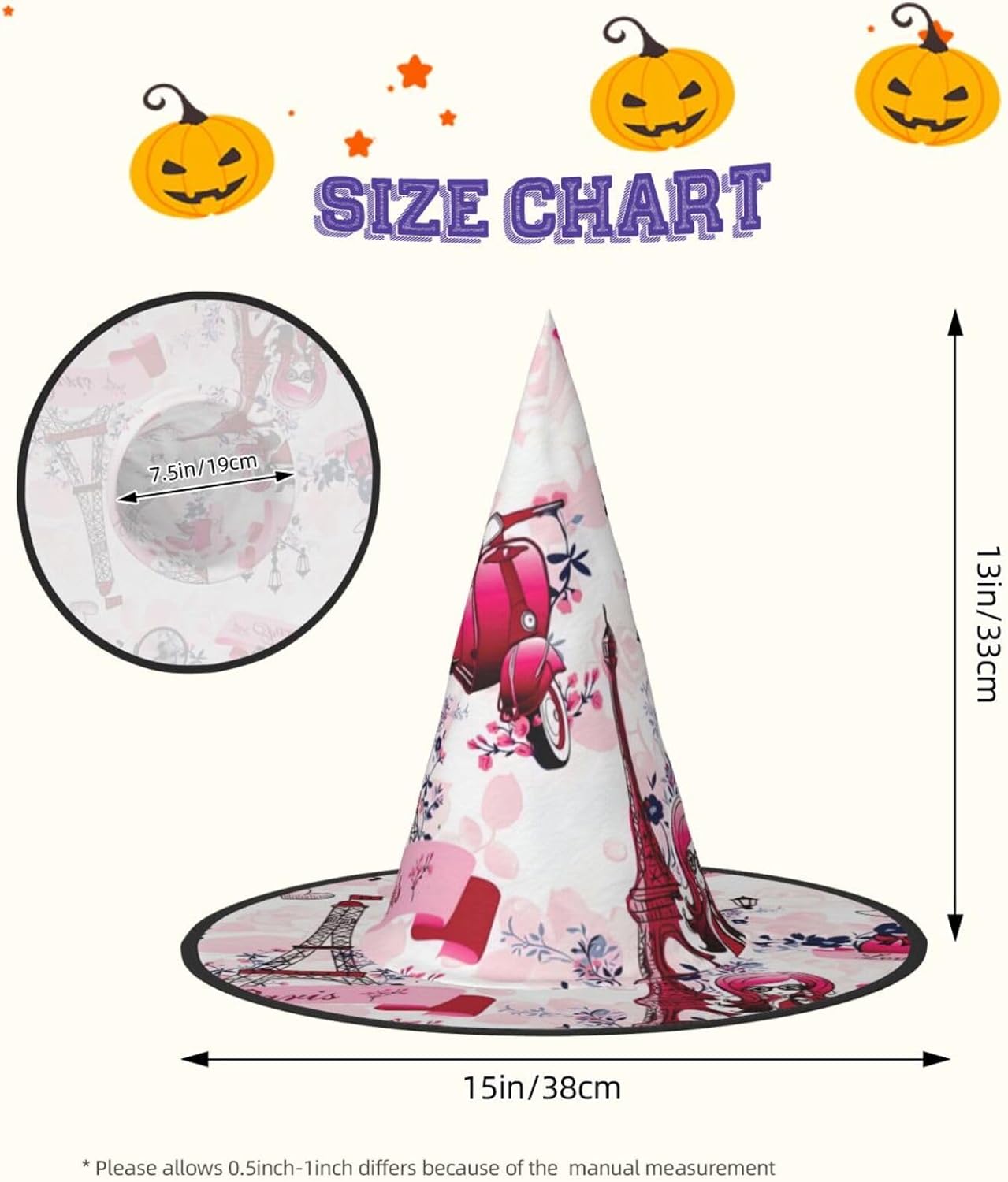 Realizzato con comodo panno Oxford, questo cappello da strega con stampa della Torre Eiffel di Parigi non è solo un accessorio; è un investimento per molte stagioni di Halloween a venire. Il design unico del cappello consente di restringere la parte superiore e la tesa di essere attorcigliata e piegata, rendendolo compatto e facile da riporre. Nonostante la sua struttura, è incredibilmente leggero e può essere trasportato ovunque senza problemi. Il nostro cappello da strega di Halloween con stampa Torre Eiffel di Parigi è progettato per adattarsi comodamente alla maggior parte delle persone, rendendolo una scelta ideale per qualsiasi festa di Halloween, carnevale, mascherata o evento cosplay. Il suo design accattivante ti renderà il punto focale della festa.