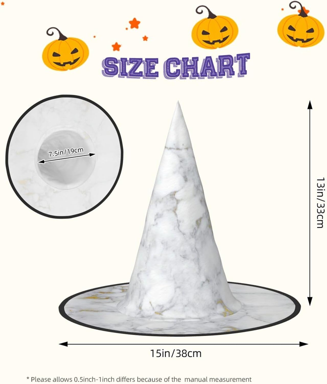 Realizzato con comodo panno Oxford, questo cappello da strega con stampa in marmo nero chiaro non è solo un accessorio; è un investimento per molte stagioni di Halloween a venire. Il design unico del cappello consente di restringere la parte superiore e la tesa di essere attorcigliata e piegata, rendendolo compatto e facile da riporre. Nonostante la sua struttura, è incredibilmente leggero e può essere trasportato ovunque senza problemi. Il nostro cappello da strega di Halloween con stampa in marmo nero chiaro è progettato per adattarsi comodamente alla maggior parte delle persone, rendendolo una scelta ideale per qualsiasi festa di Halloween, carnevale, mascherata o evento cosplay. Il suo design accattivante ti renderà il punto focale della festa.