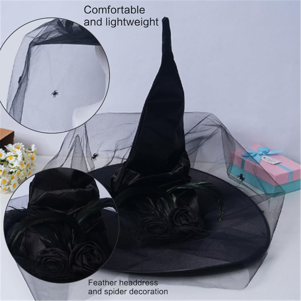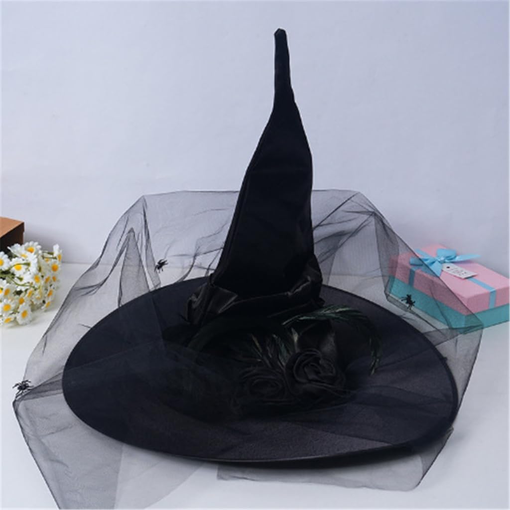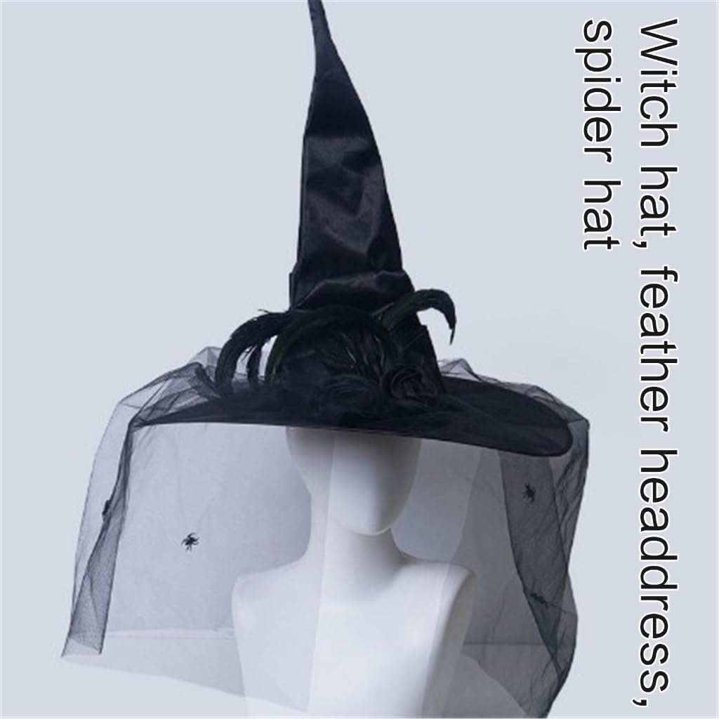 Cappelli di Halloween da vampiro - Cappello da spettacolo teatrale - Cappello da donna alla moda - Cappello da strega malevola per feste in giardino di Halloween Caratteristiche: Un cappello da strega pieghettato unico in combinazione con una sciarpa e una decorazione a ragno contribuisce all'atmosfera del festival. È realizzato con materiali di alta qualità, comodo, leggero e facile da indossare. Ogni cappello da strega misura circa 54-58 cm, il che lo rende una misura adatta per essere indossato o decorato. Adatto agli amanti di Halloween di tutte le età che amano travestirsi e andare alle feste. Adatto per feste di Halloween, feste in maschera, giochi di ruolo e altre occasioni che aggiungono più mistero e attrazione. Specifiche: Colore: due scelte Dimensioni: 54-58 cm Componente: tessuto Contenuto della confezione: 1 x cappello da strega di Halloween. Nota: si prega di consentire un errore di 1-2 cm dovuto alla misurazione manuale. Assicurati che non ti dispiaccia prima di ordinare. Il colore dell'articolo può variare leggermente dalla foto a seconda delle impostazioni di visualizzazione e luminosità del computer.