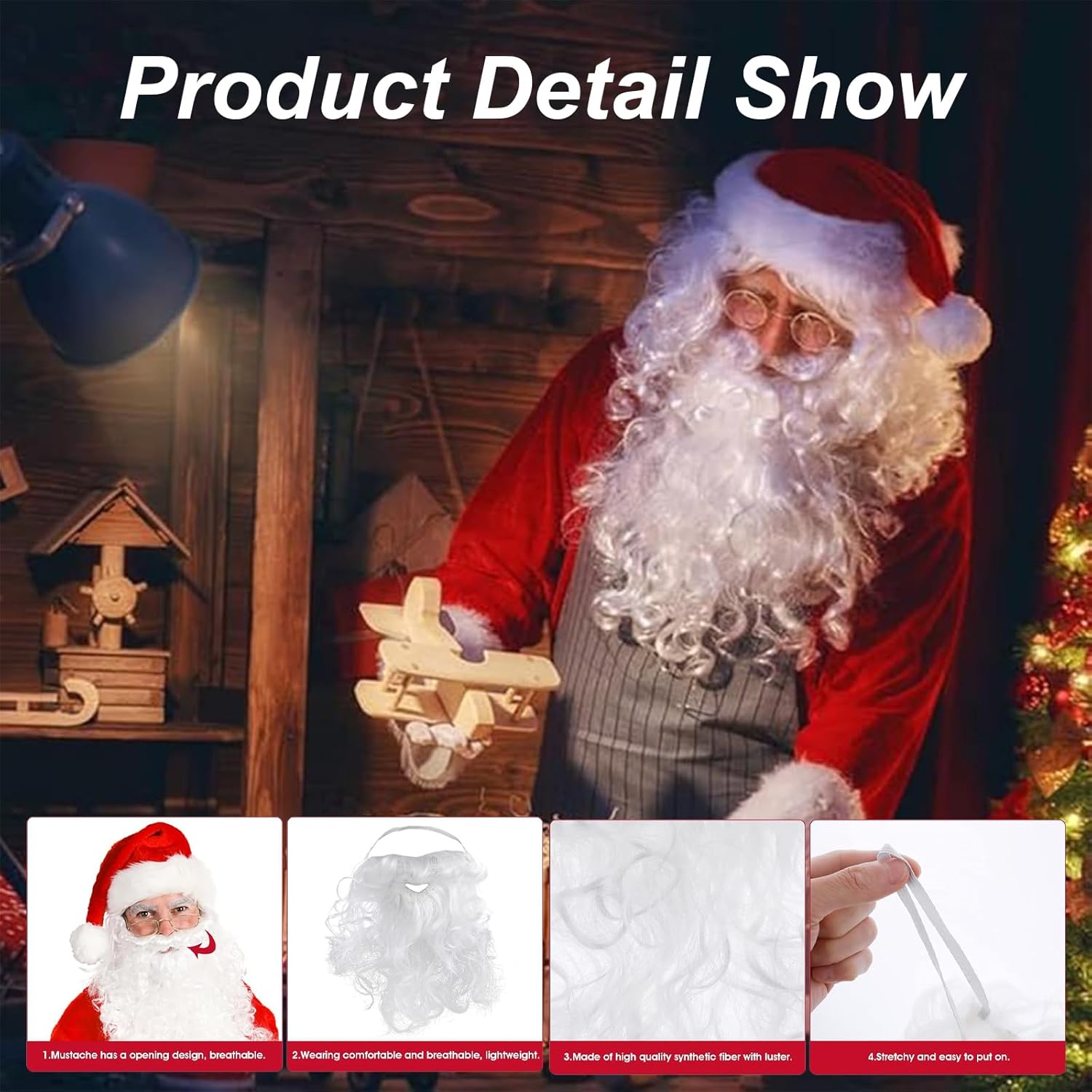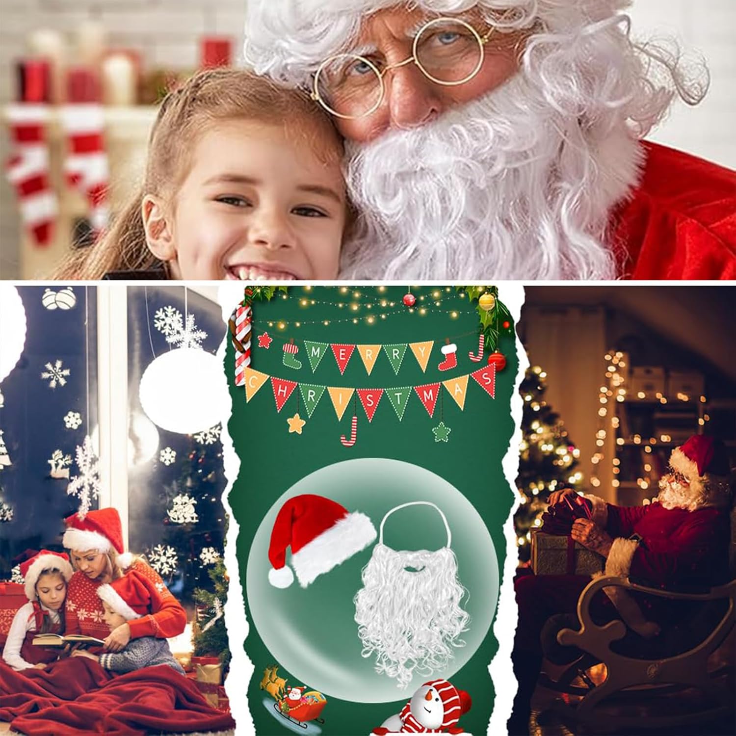 Descrizione del prodotto Cappelli da Babbo Natale e barba da Babbo Natale Decorazioni natalizie Cappello natalizio Set da barba per adulti Regali per feste in famiglia Travestimenti di fantasia Avviso di sicurezza No