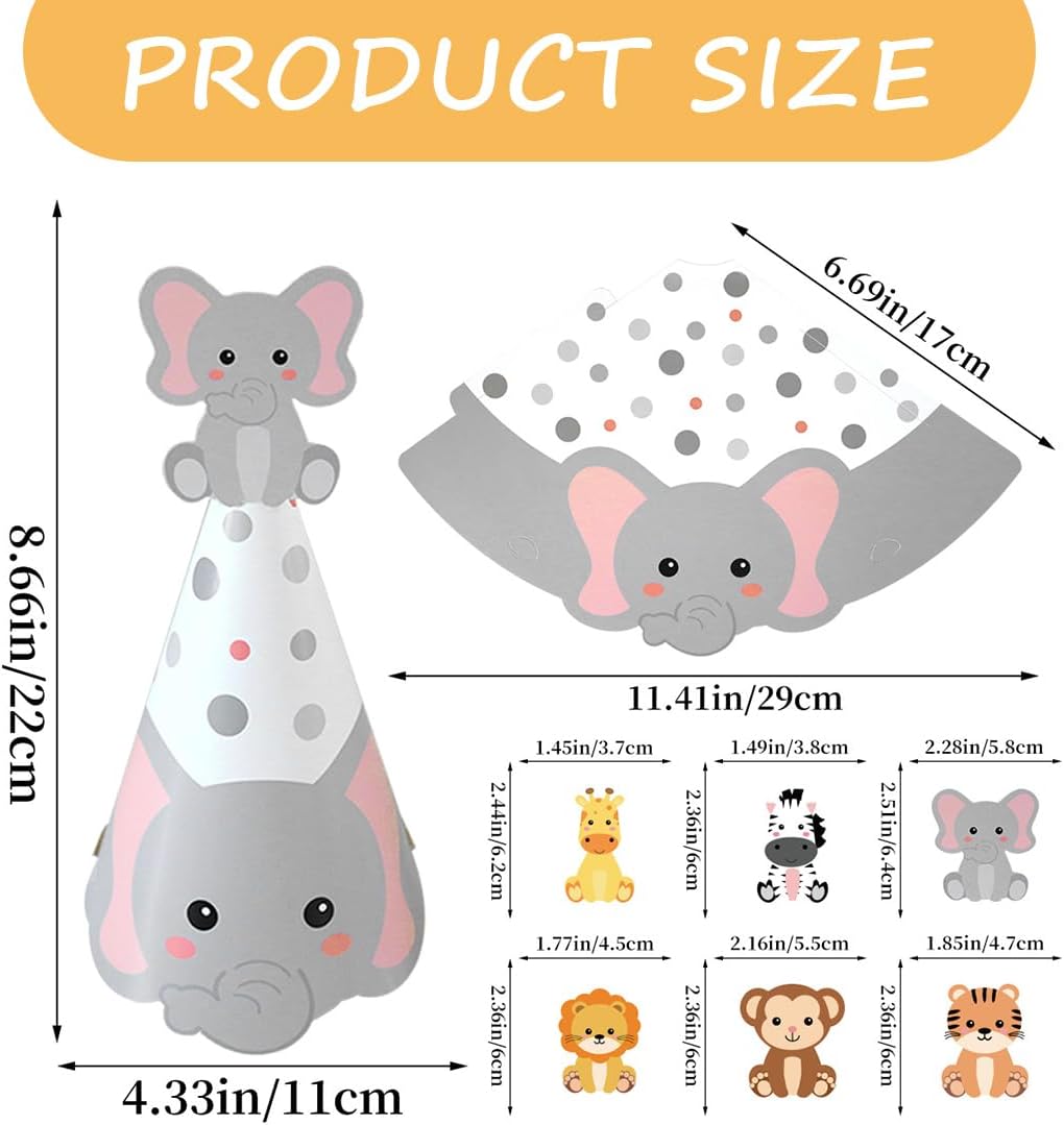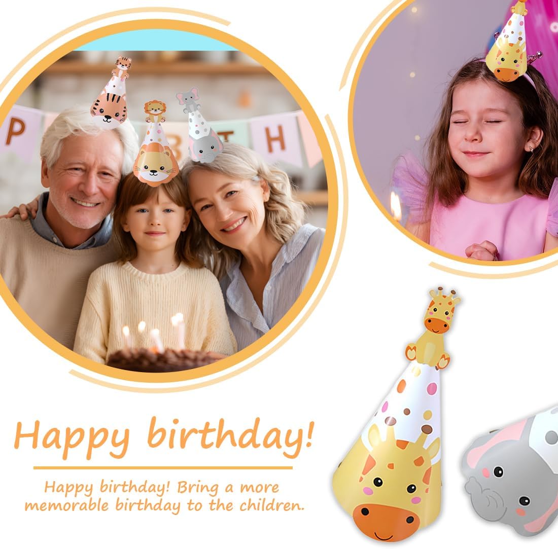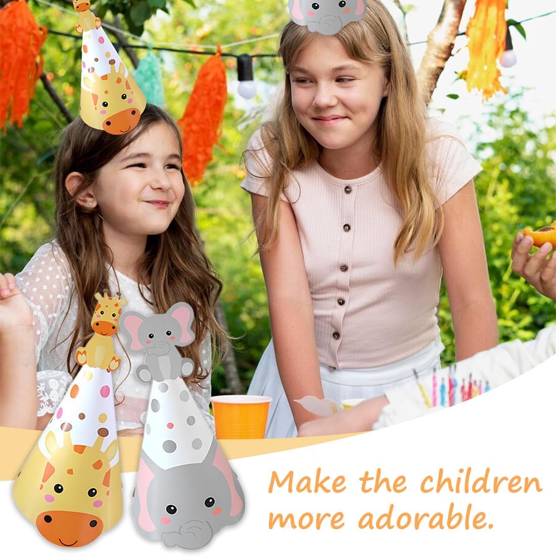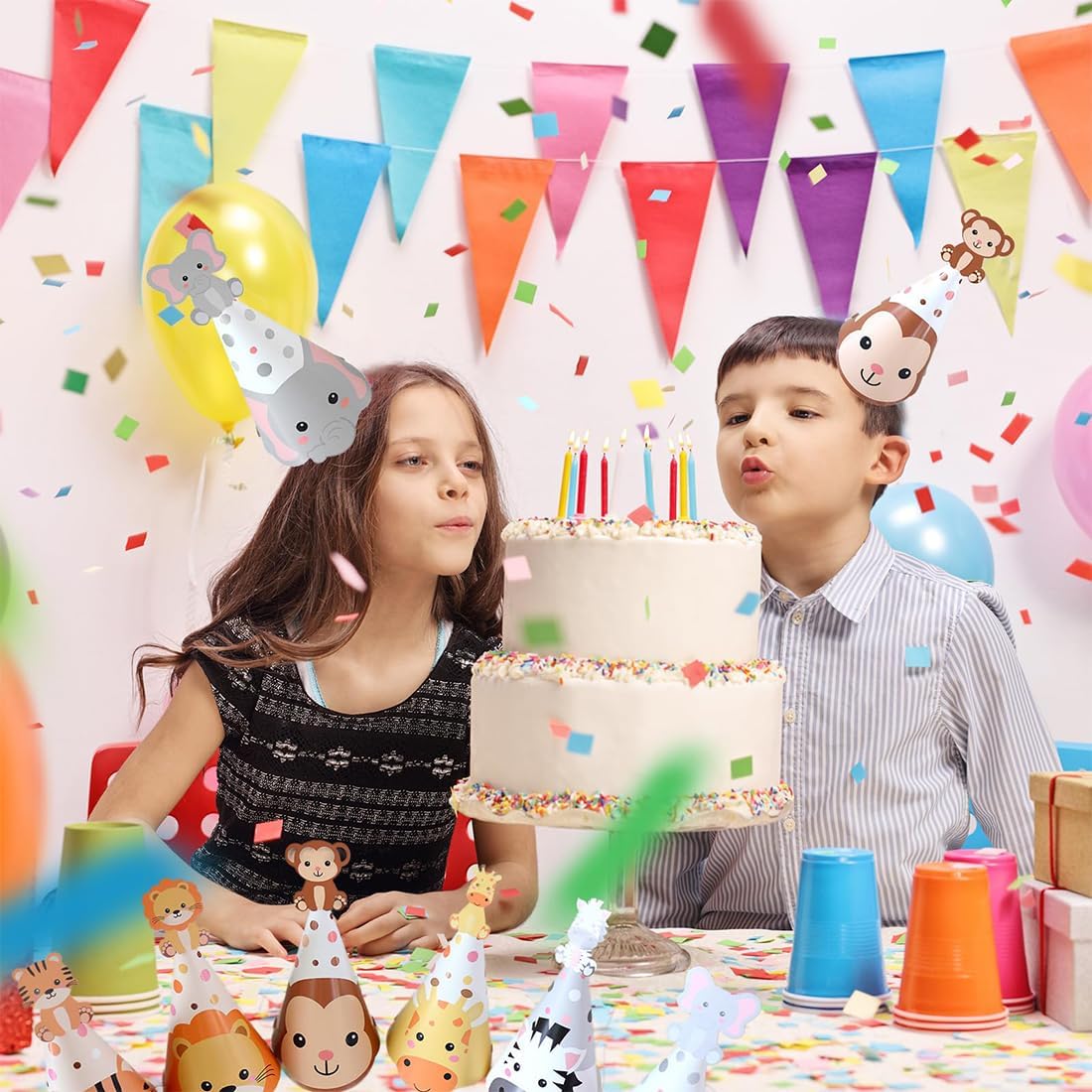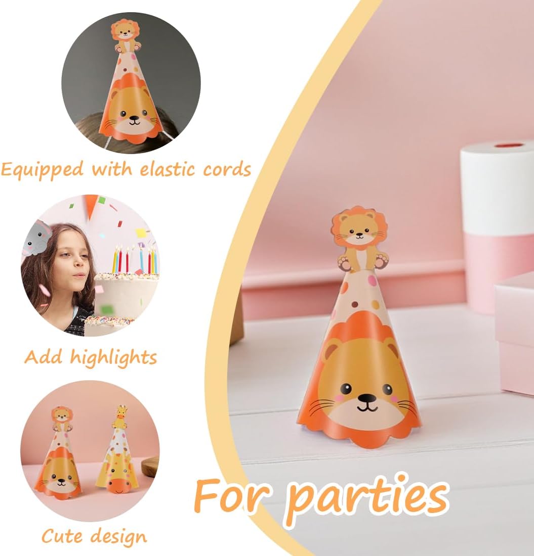 Adorabili disegni di animali: con affascinanti creature come tigri, giraffe, zebre, elefanti, scimmie e leoni, questi articoli vivaci e dai colori brillanti catturano immediatamente l'attenzione dei bambini, aggiungendo un tocco giocoso alle feste di compleanno. Eccellente adattabilità alle dimensioni: il cappellino misura circa 22 cm (altezza) × 11 cm (larghezza della base). Dotato di un elastico, si adatta in modo flessibile a bambini con teste di diverse dimensioni, rimane saldamente in posizione senza scivolare e offre una vestibilità comoda e senza restrizioni. Materiali di alta qualità: realizzati con materiali cartacei sicuri, questi cappelli sono inodori e non irritanti. Leggeri ma robusti, resistono alla deformazione e ai danni, garantendo un uso ripetuto per feste e altre occasioni. Esaltatori dell'atmosfera della festa: più che semplici decorazioni, questi cappelli fungono da oggetti di scena interattivi. I bambini possono indossarli per imitare i movimenti degli animali, elevando senza sforzo l'atmosfera gioiosa e vivace della festa e diventando il momento clou dell'evento. Utilizzo versatile: oltre alle feste di compleanno dei bambini, questi cappelli sono ideali per attività all'asilo, incontri a tema e altri eventi, aggiungendo un tocco distintivo. I loro disegni affascinanti creano anche ricordi piacevoli e unici per i compleanni dei bambini.