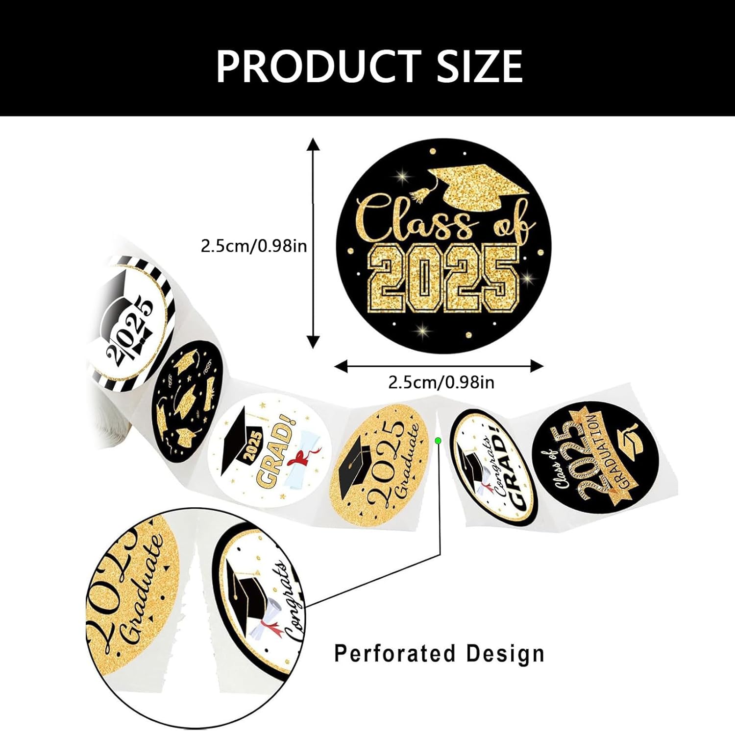 Per laureati, insegnanti, genitori e organizzatori di eventi per aggiungere un tocco alle cerimonie di laurea. Festeggia le lauree con stile con l'adesivo autoadesivo che aderisce saldamente e si rimuove in modo pulito senza lasciare residui. Utilizzato per decorare feste di laurea, packaging, album fotografici e creare cimeli per celebrazioni varie. Questi adesivi rotondi presentano un motivo colorato e chiaro e sono resistenti all'usura per garantire che rimangano luminosi e intatti nel tempo. Realizzati con materiali amichevoli, questi adesivi sono sicuri per l'ambiente, per qualsiasi celebrazione.