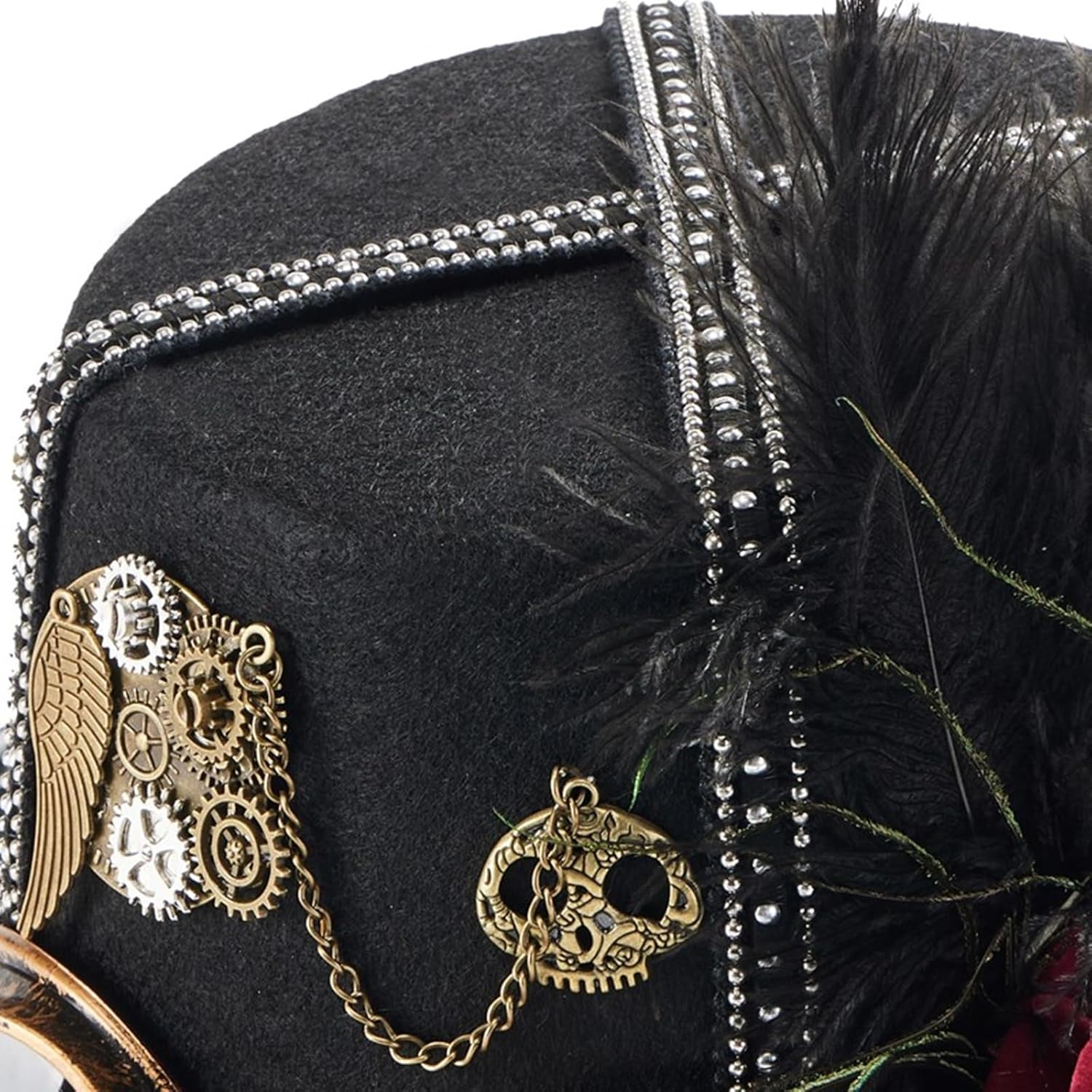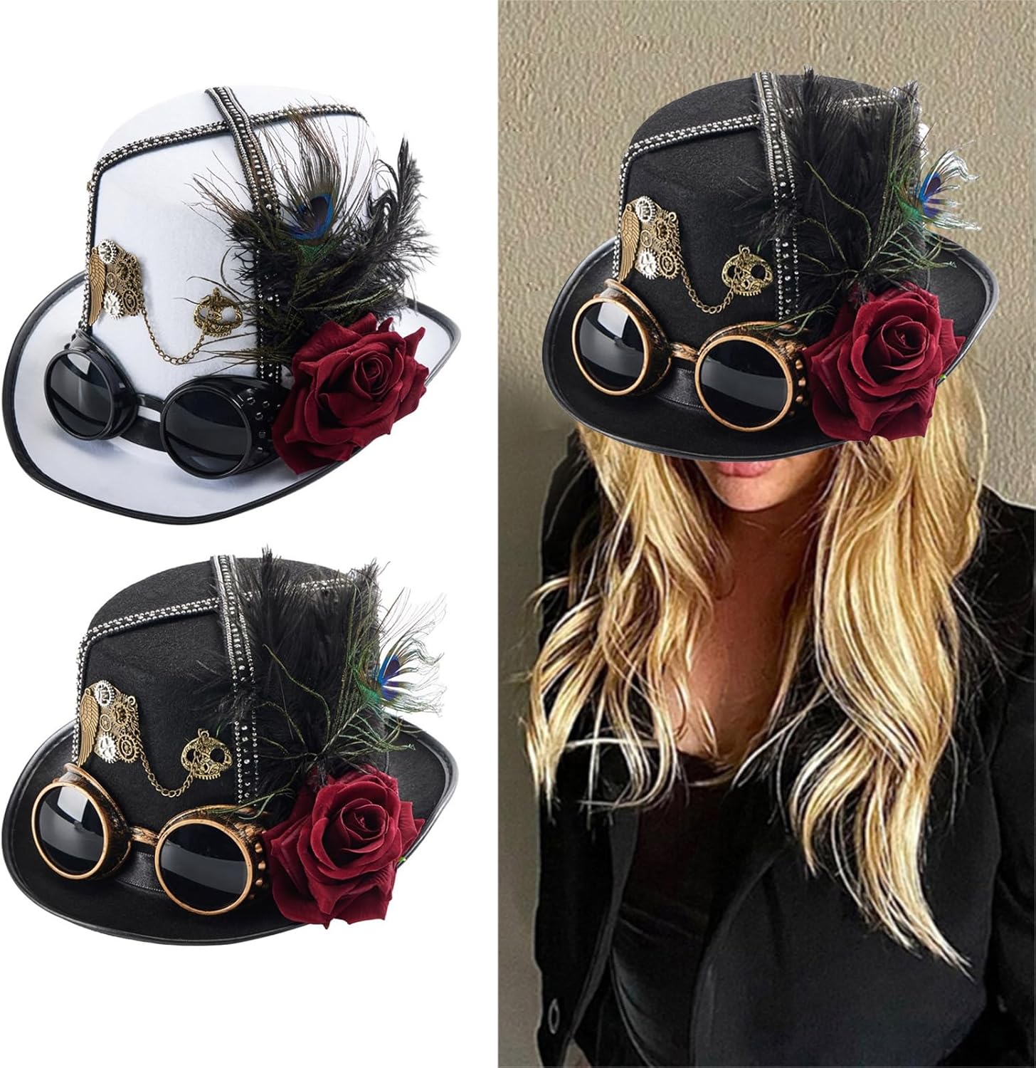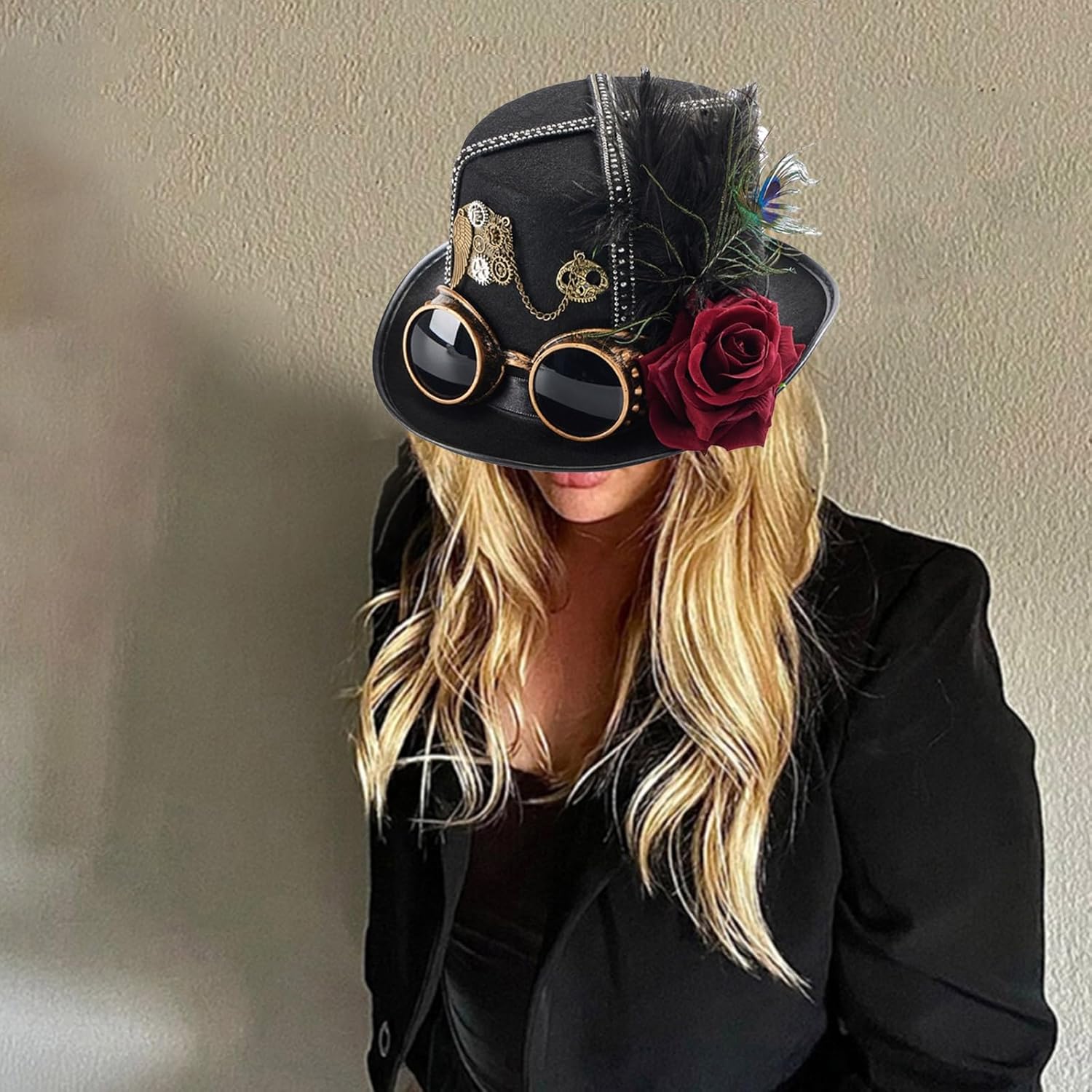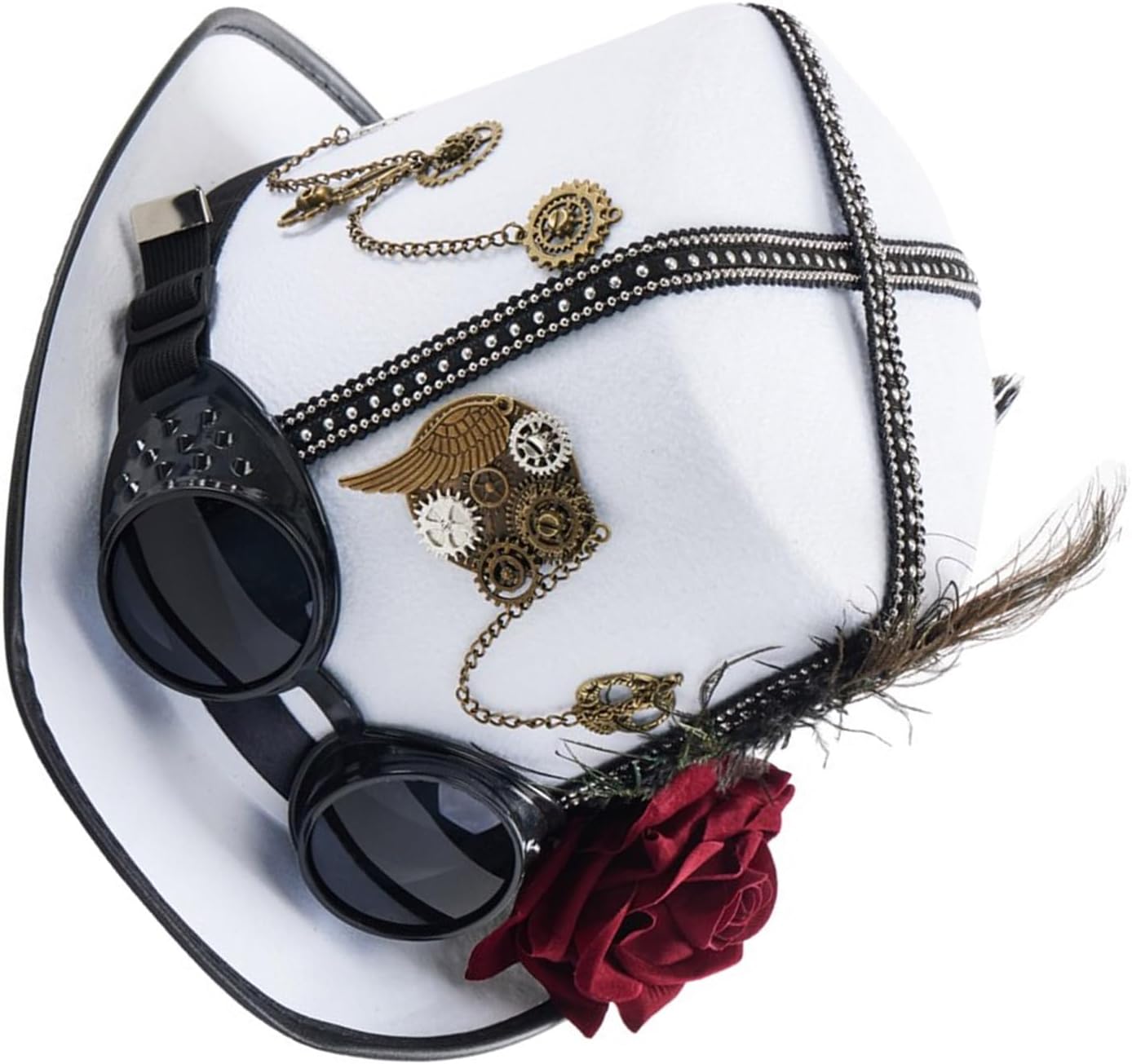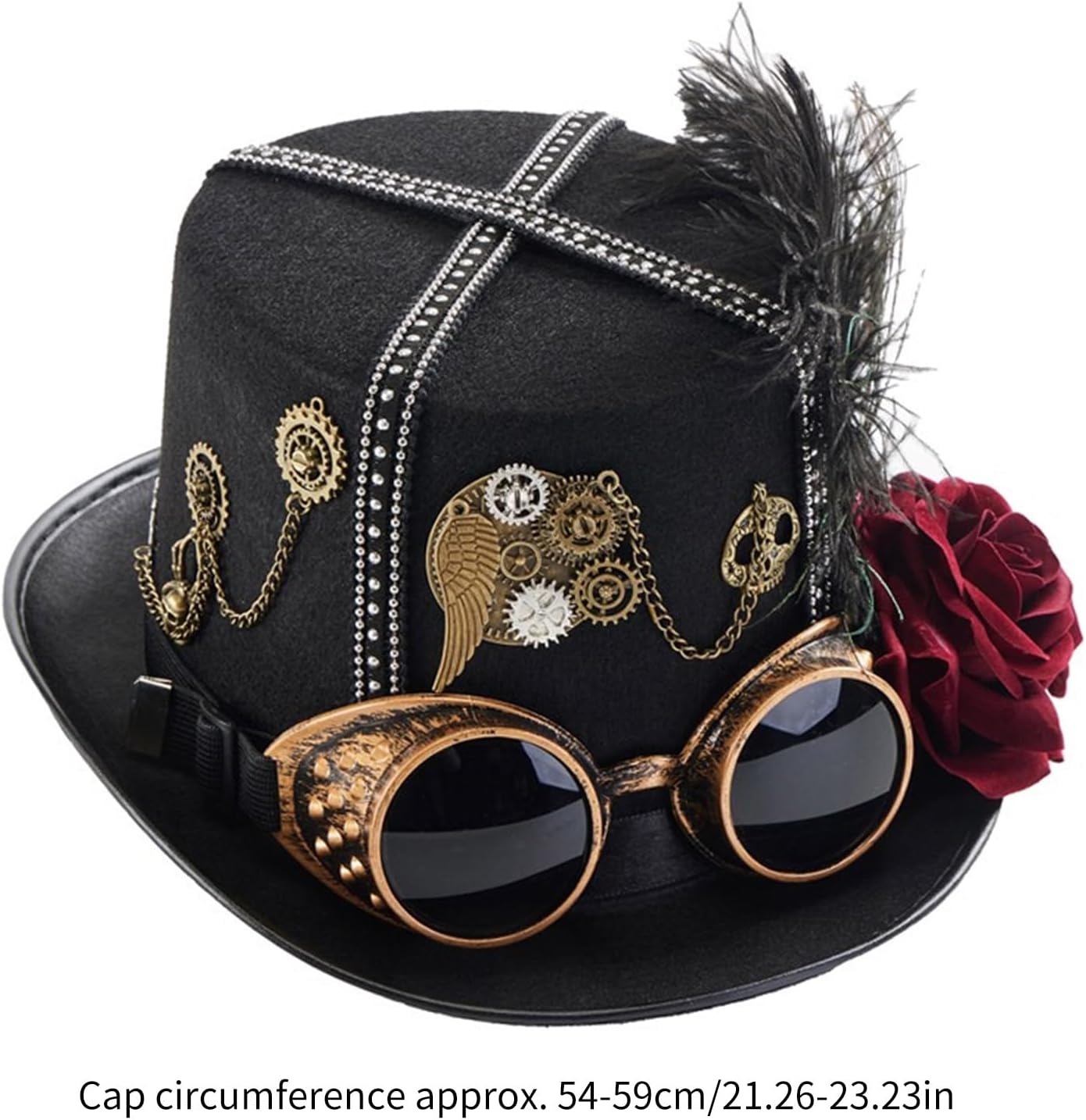 Cappello a bombetta da mago stile punk con occhiali per donne adulte Uomini Cosplay Costume di Halloween Caratteristiche: Completa la tua festa a tema Steampunk con questo cappello unico per donne, uomini, adolescenti e adulti. Tessuto non tessuto selezionato per maggiore comfort e traspirabilità. Per chi ha bisogno di valorizzare il proprio look per varie occasioni, unisex e facile da abbinare. Adatto a varie attività all'aperto, abbigliamento casual, feste, varie occasioni per donne e uomini. Cattura l'attenzione in qualsiasi outfit con questo cappello alla moda che aggiunge un tocco di funzionalità: Dimensioni del prodotto: ca. Circonferenza della testa: 54-59 cm. Tessuto non tessuto. Opzione: 01/02 Contenuto della confezione: 1 cappello a cilindro Steampunks. Nota: si prega di consentire un errore di 1-2 cm dovuto alla misurazione manuale. Il colore dell'articolo può variare dalla foto a seconda delle impostazioni di visualizzazione e luminosità del computer.