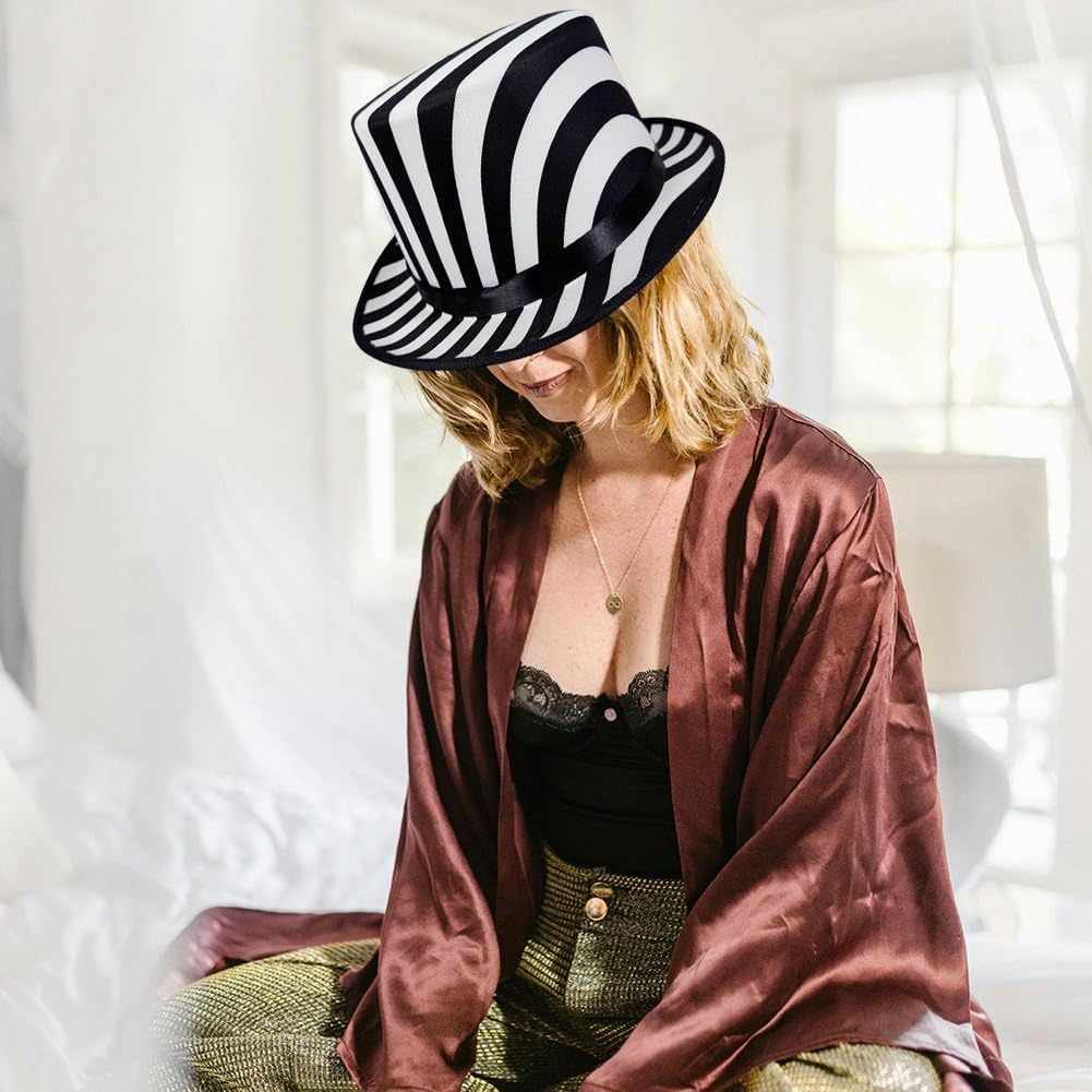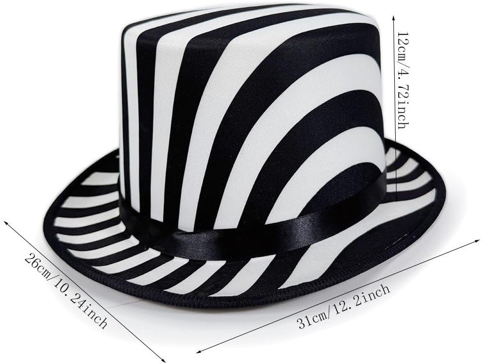 Abbinalo facilmente ad abiti su misura, vestiti o outfit casual per eleganza e aggiungi un'atmosfera teatrale al tuo guardaroba. Per maghi, musicisti, appassionati di vintage, per chi cerca un accessorio di tendenza per serate a tema o raduni in maschera. Il classico cappello da mago con motivi bianco nero combina il fascino vintage con la modernità per performance accattivanti di eventi vintage. Adatto per concorsi, matrimoni a tema anni '20, feste o oggetti di scena fotografici con questo classico cappello in costume a quadretti che attira l'attenzione. Morbido e confortevole, non facile da rompere e sbiadire, resistente all'usura per l'uso quotidiano.