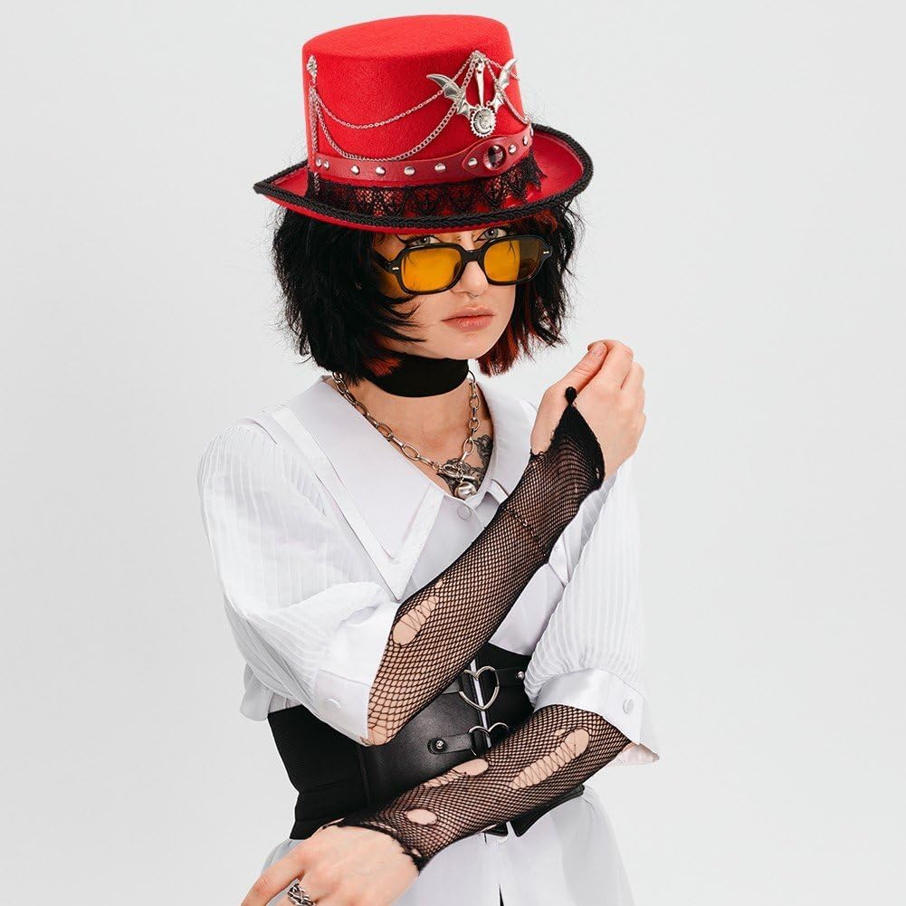 Progettato per gli appassionati di moda alternativa, creatori di cosplay e artisti in cerca di accessori gotici audaci che catturino l'attenzione durante gli eventi a tema. Ingranaggi decorativi in metallo, decorazioni per gli occhi e pizzi creano dettagli meccanici sui cappellini in feltro, unendo funzionalità. Adatto per feste a tema steampunk, giochi di ruolo, fotografia di strada alla moda e altre occasioni. Un sorprendente cappello in stile steampunk che fonde audacemente design gotico ed esagerato, perfetto per trasformazioni di Halloween o spettacoli teatrali. Realizzati in feltro e metallo, mantengono una vestibilità leggera, sono sia decorativi che comodi.