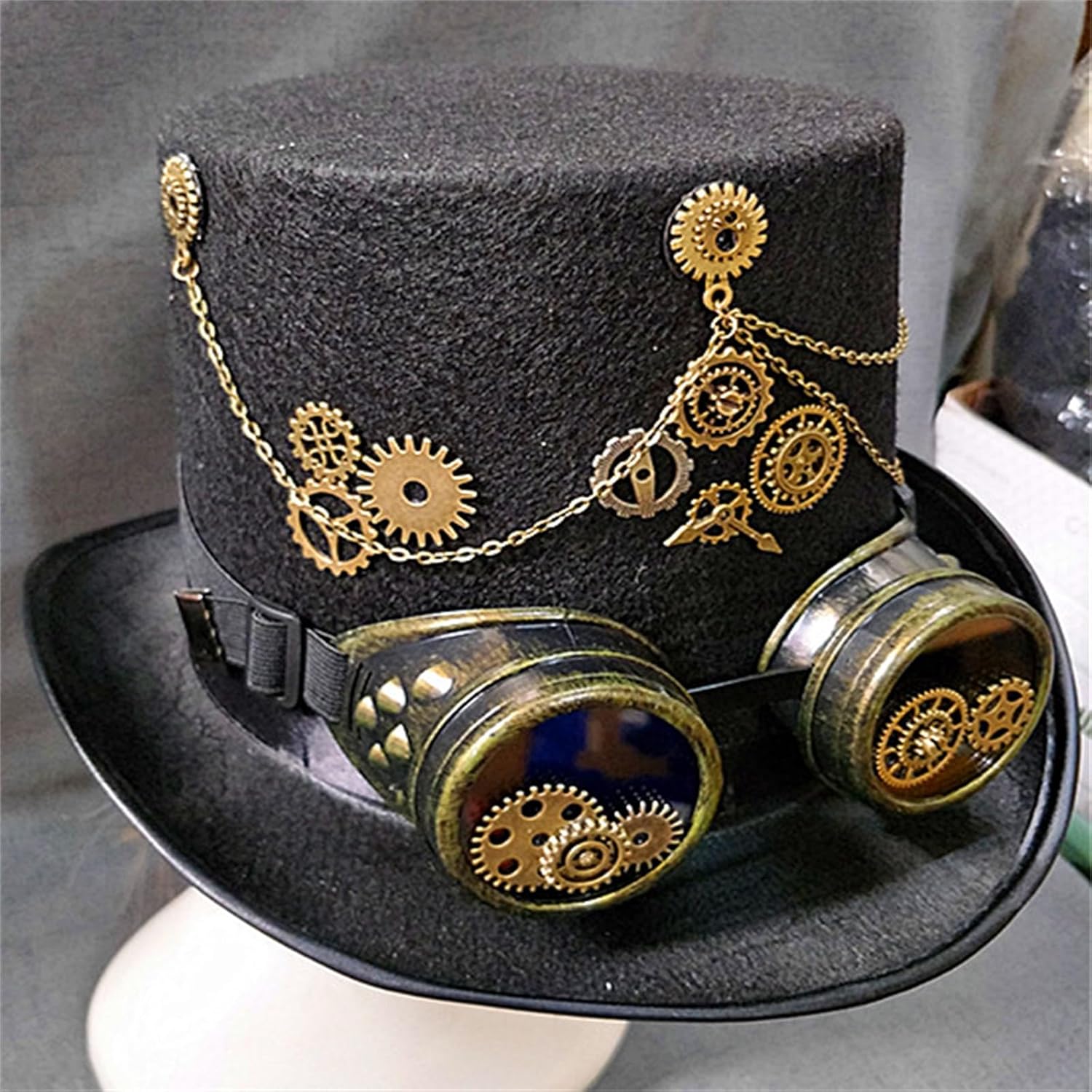 Cappello a cilindro Steampunk unisex per Halloween, cappello a cilindro gotico nero con tesa piccola e occhiali per uomo e donna Caratteristiche: Cappello steampunk straordinario e unico, che combina steampunk e moda per un look distintivo. Realizzato con materiali, questo cappello garantisce comfort e durata. Il suo versatile design nero si abbina a vari outfit. Pensato per chi apprezza lo stile steampunk e trendy, questo cappello è un accessorio indispensabile. Perfetto per feste, cosplay o da indossare tutti i giorni, questo cappello aggiunge un tocco di personalità ad ogni occasione. Abbinalo a diversi outfit per evidenziare il tuo stile unico. Migliora il tuo look con questo cappello squisito. La sua complessa lavorazione artigianale lo rende un accessorio straordinario. Caratteristiche: Non tessuto. Circonferenza del cappello: 54-58 cm. Colore: nero. Contenuto della confezione: 1 cappello piatto steampunk. Nota: 1. Si prega di consentire un errore di 1-2 cm dovuto alla misurazione manuale. Assicurati che non ti dispiaccia prima di ordinare. Il colore dell'articolo può variare dalla foto a seconda delle impostazioni di visualizzazione e luminosità del computer.