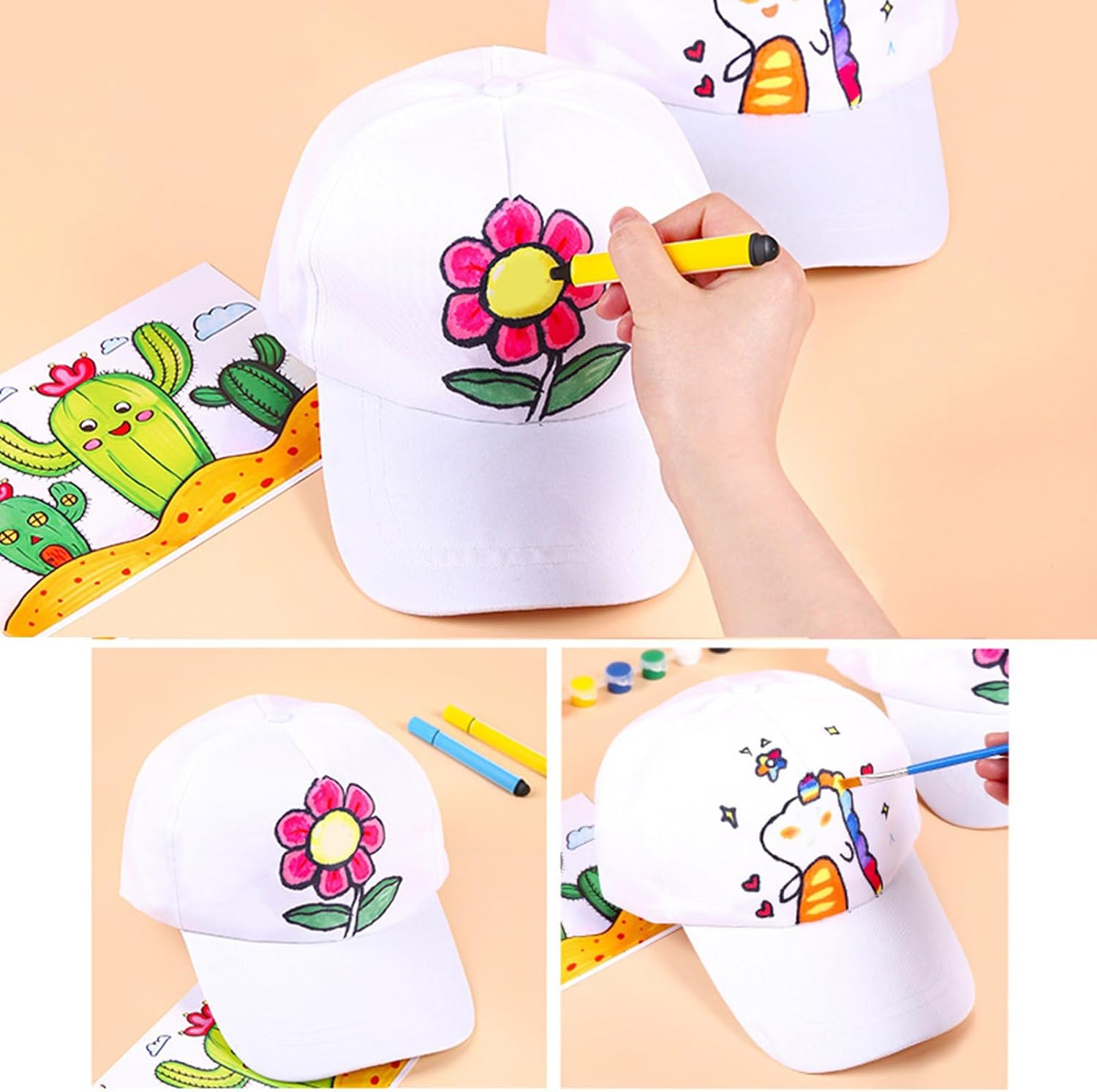 Tessuto di cotone lavabile in lavatrice del gioco artistico del cappello di arte dei bambini riutilizzabile per i progetti di arte domestica della scuola Caratteristiche: Scatena la creatività del tuo bambino con questo cappello da baseball in cotone bianco progettato per i bambini per dipingere a mano disegni unici usando acquerelli, acrilici o pennarelli. Tessuto di cotone traspirante di alta qualità, questo cappello con superfici lisce resiste a ripetute pitture artistiche mantenendo il comfort durante l'uso prolungato per artisti di età compresa tra 5 e 12 anni, famiglie creative ed educatori d'arte alla ricerca di strumenti interattivi per attività di sviluppo. Utilizzare durante progetti artistici scolastici, attività di festa di compleanno in campeggio o momenti di legame in famiglia all'aperto che richiedono protezioni solari. Le superfici lavabili in lavatrice preservano le opere d'arte mentre le cuciture rinforzate garantiscono la durata attraverso innumerevoli avventure fantasiose. Specifiche tecniche: Componente: Cotone Circonferenza della testa: circa 52-55 cm. Quantità: 1 pezzo. La confezione include: 1 cappello bianco. Nota: 1. Si prega di considerare un margine di errore di 0-2 cm dovuto alla misurazione manuale. 2. A causa delle differenze tra i diversi monitor, l'immagine potrebbe non riflettere esattamente il colore dell'articolo.