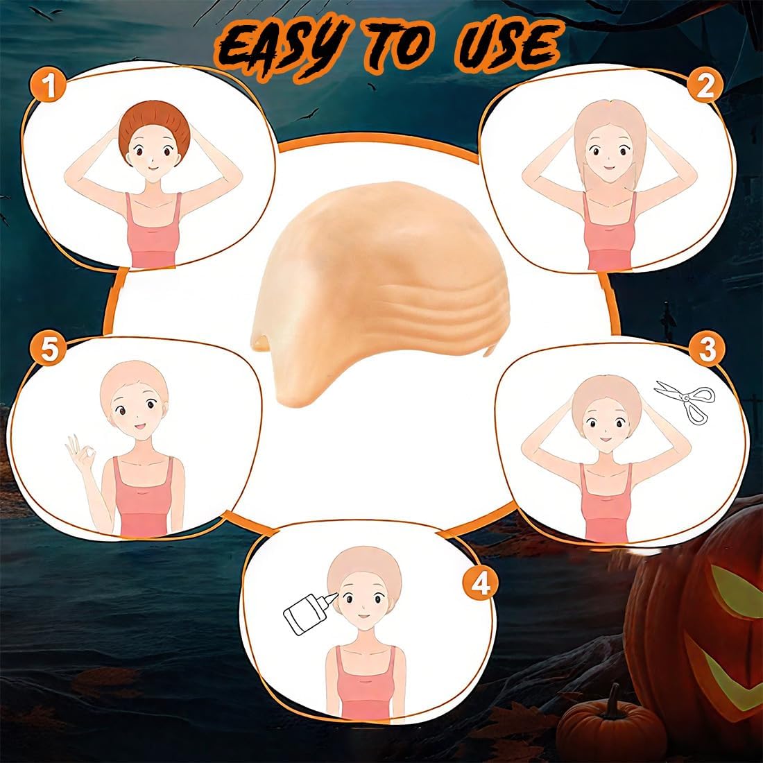 Materiale: realizzato in lattice di alta qualità, è morbido e delicato sulla pelle, ha una buona elasticità, è comodo da indossare senza risultare stretto, è durevole e non si rompe facilmente e può mantenere una buona forma per lungo tempo. Vestibilità confortevole:Può avvolgere bene diverse dimensioni della testa. Se il berretto copre le orecchie, puoi tagliarlo in modo che si adatti meglio. Comodo: facile da indossare, facile da mettere e da togliere, non richiede operazioni complicate, consente di completare rapidamente il cambio di stile, risparmiando tempo ed energia. Suggerimenti per l'uso: puoi spalmare il bordo del cappello con il lattice prima di indossarlo e poi adattarlo al colore della tua pelle con l'aiuto di cosmetici, in modo che sia più realistico con la calvizie. Usi: Adatto per giochi di ruolo, feste di Halloween, spettacoli teatrali e altre occasioni. Può essere abbinato a vari look di trucco per aiutarti a creare facilmente immagini di personaggi diversi.