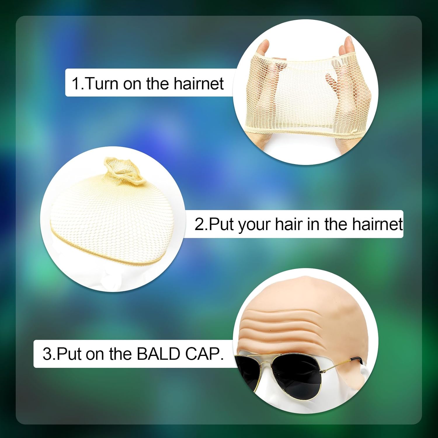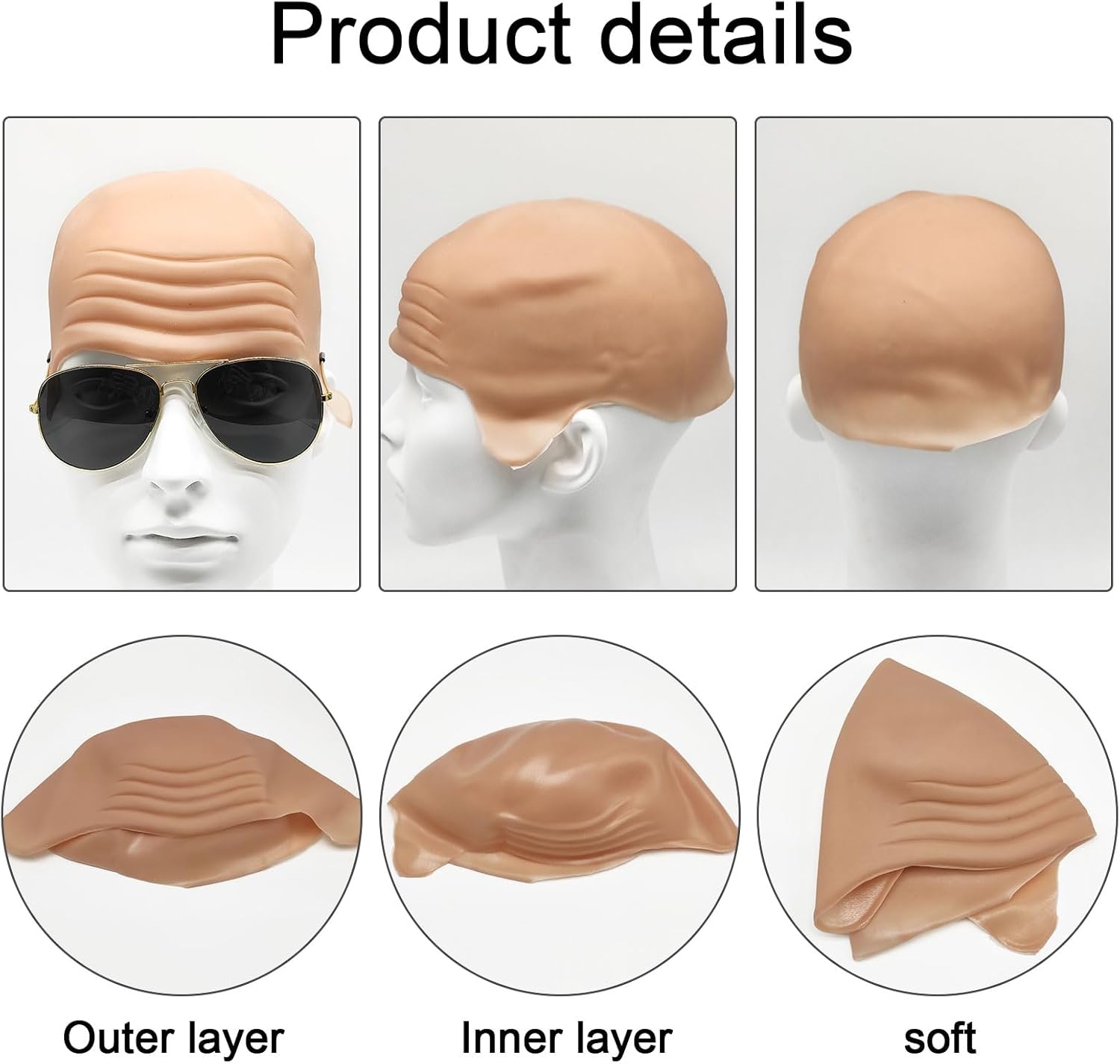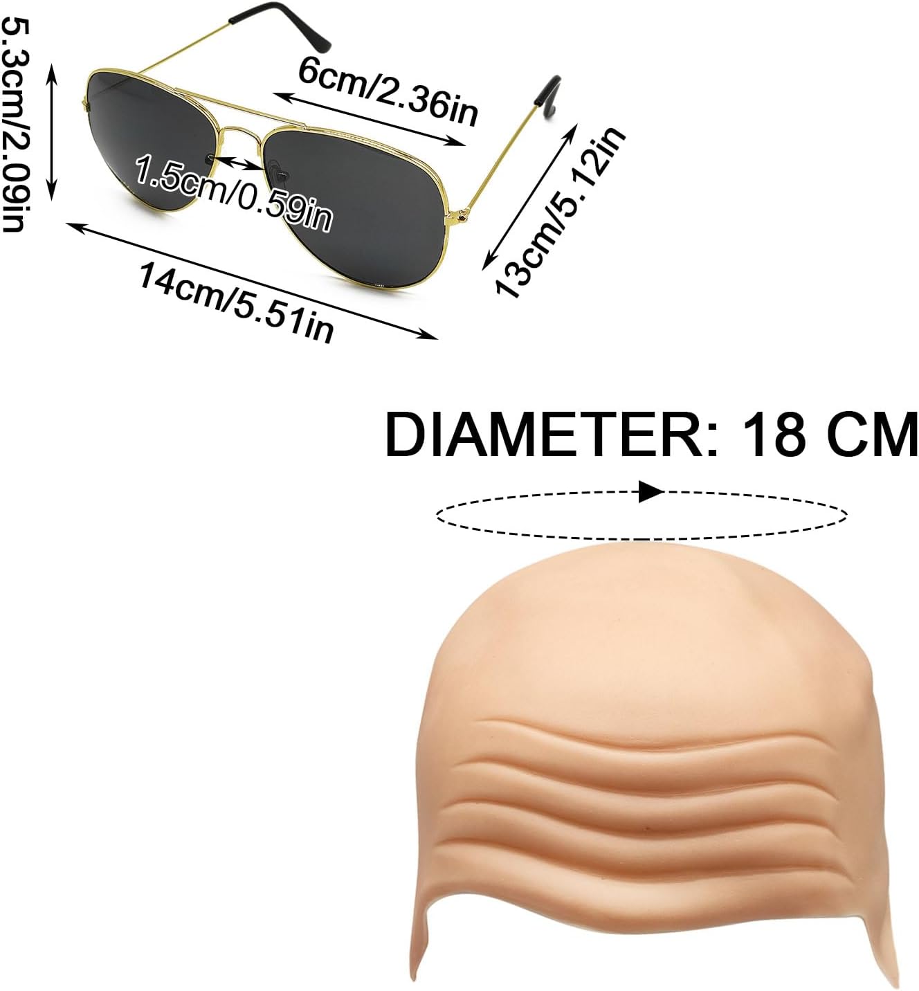 Cappello Calvo Berretto per Parrucca a Testa Calva in Lattice Parrucca Calva Occhiali da Sole, Berretto in Lattice per Adulti Cappello Pelato per Costumi di Carnevale Halloween