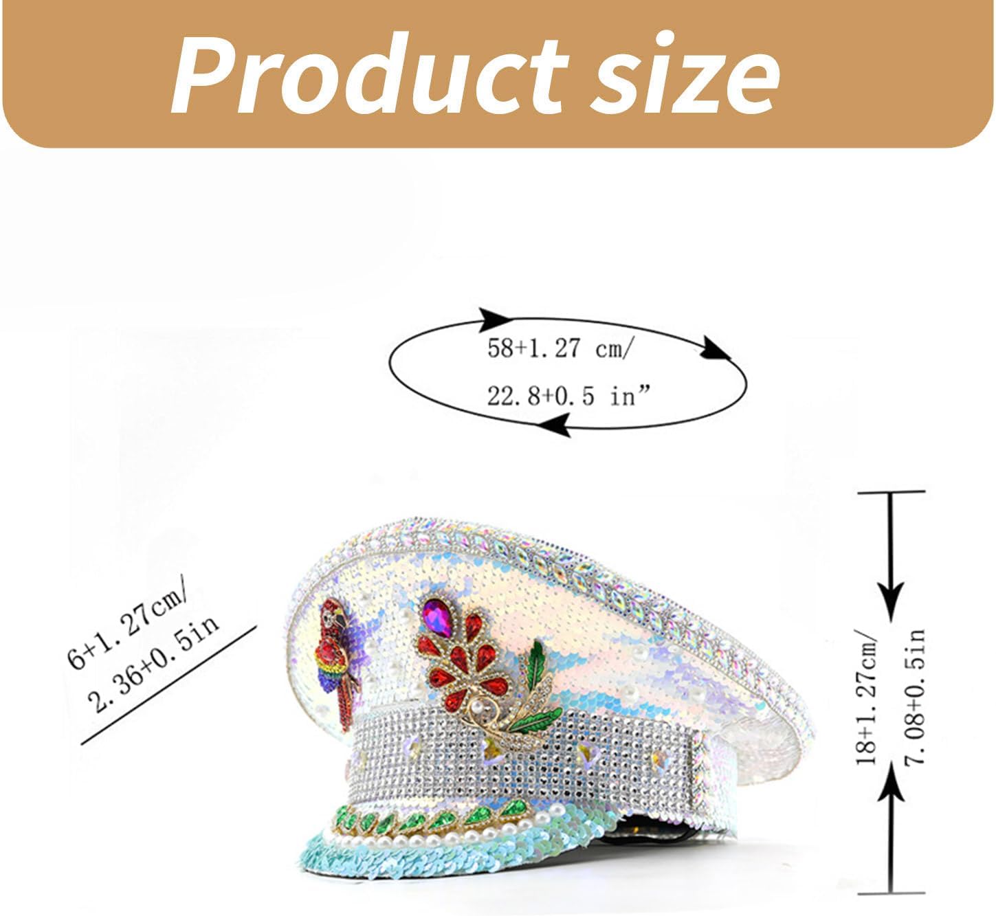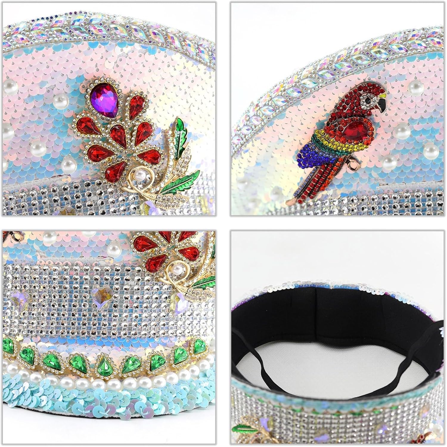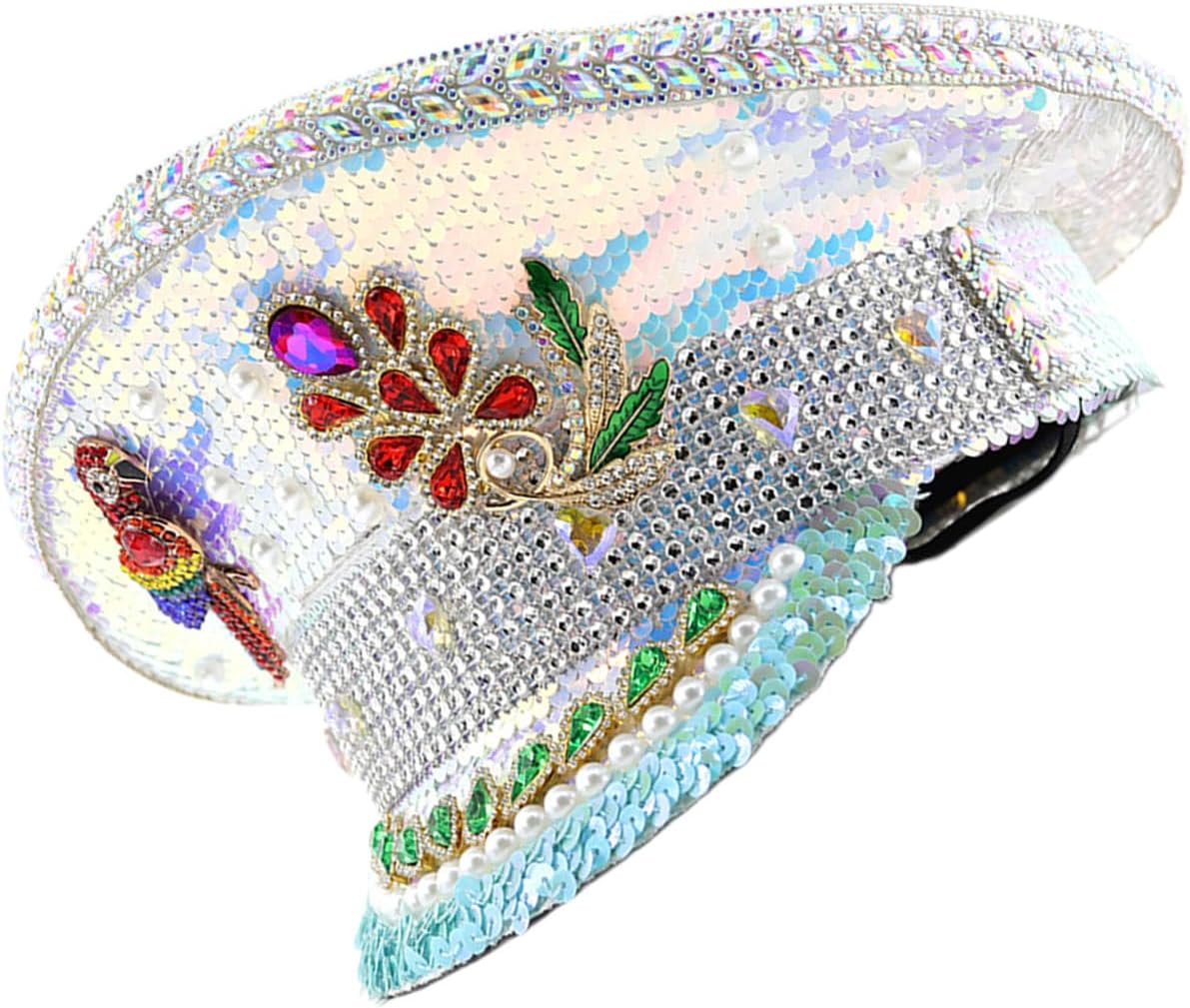 Il cappello con paillettes scintillanti e squisiti disegni pappagallo, con eleganza e divertimento. Utilizza poliestere selezionato, questo cappello presenta paillettes che catturano la luce magnificamente, assicurandoti di distinguerti in qualsiasi celebrazione. Ideale per persone alla moda che amano fare una dichiarazione, un fantastico accessorio per uomini e donne appassionati di feste. Che si tratti di compleanni, matrimoni, feste di ballo, questo scintillante cappello a secchiello è il tuo ottimo accessorio per diventare al centro dell'attenzione in qualsiasi evento festivo. La confezione include: 1 cappello marino con strass