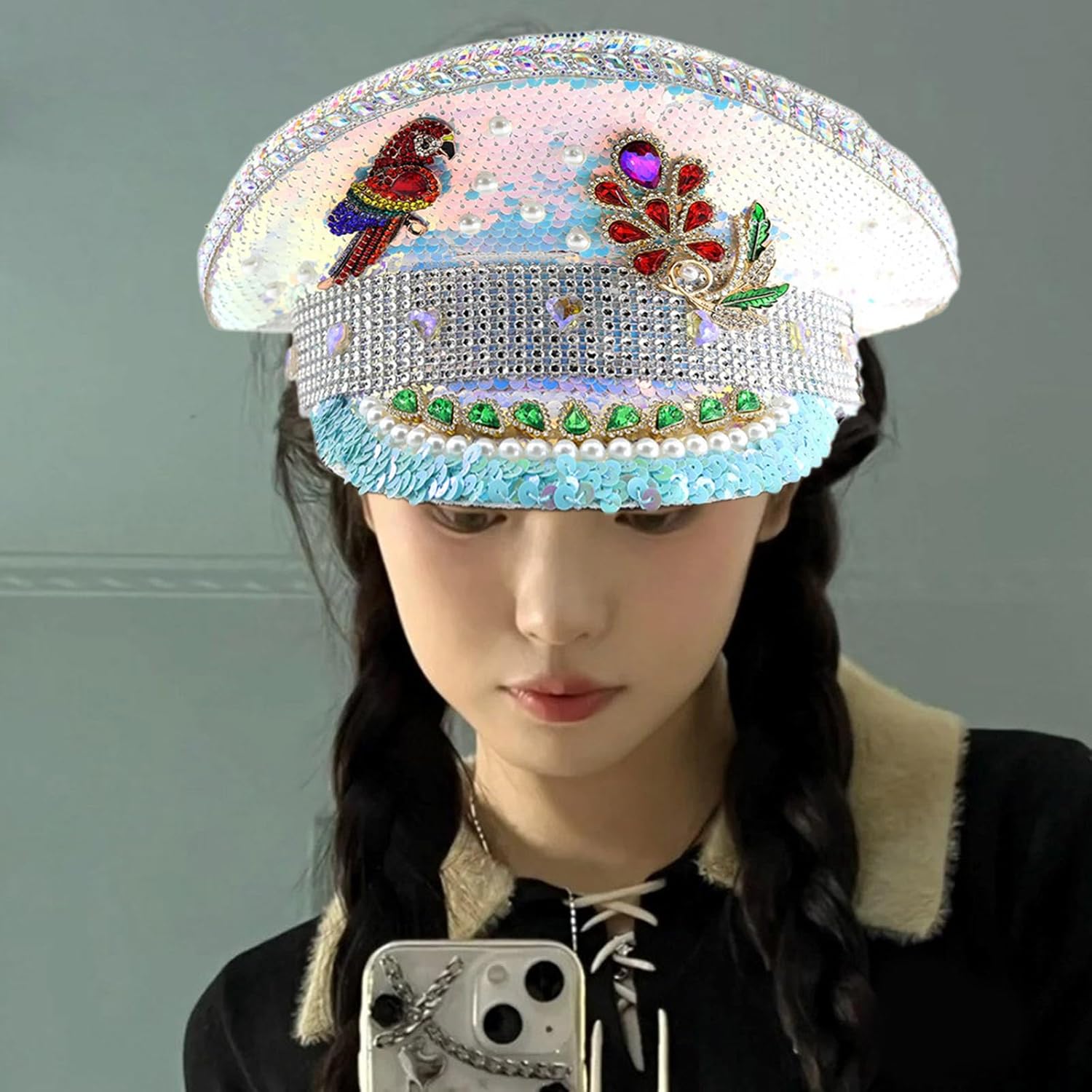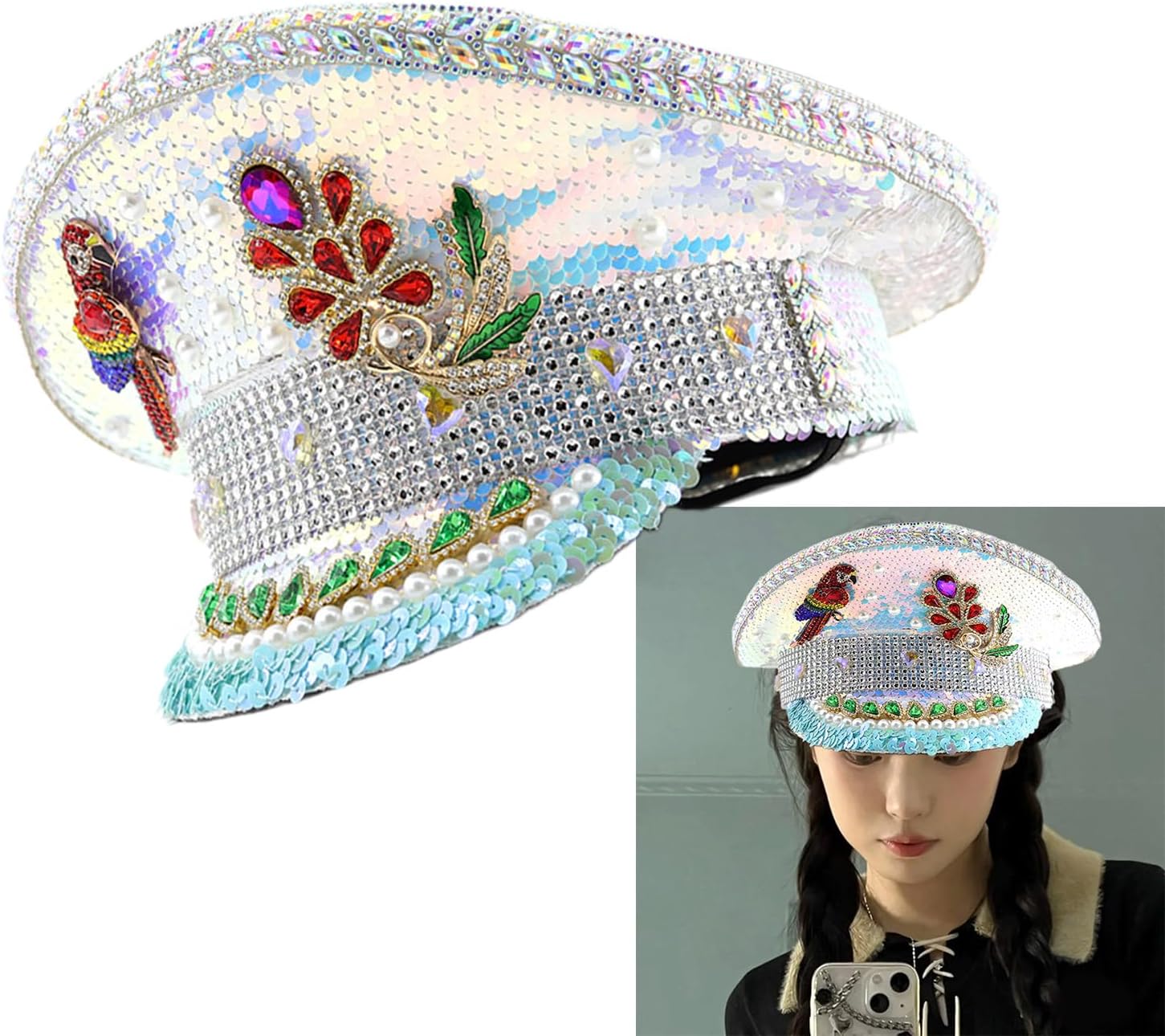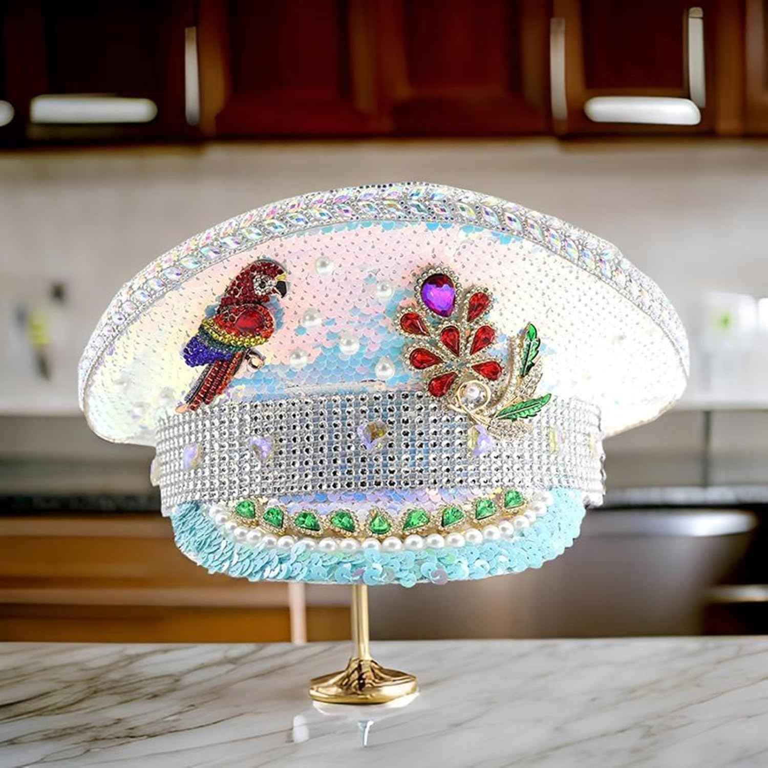 Il cappello con paillettes scintillanti e squisiti disegni pappagallo, con eleganza e divertimento. Utilizza poliestere selezionato, questo cappello presenta paillettes che catturano la luce magnificamente, assicurandoti di distinguerti in qualsiasi celebrazione. Ideale per persone alla moda che amano fare una dichiarazione, un fantastico accessorio per uomini e donne appassionati di feste. Che si tratti di compleanni, matrimoni, feste di ballo, questo scintillante cappello a secchiello è il tuo ottimo accessorio per diventare al centro dell'attenzione in qualsiasi evento festivo. La confezione include: 1 cappello marino con strass