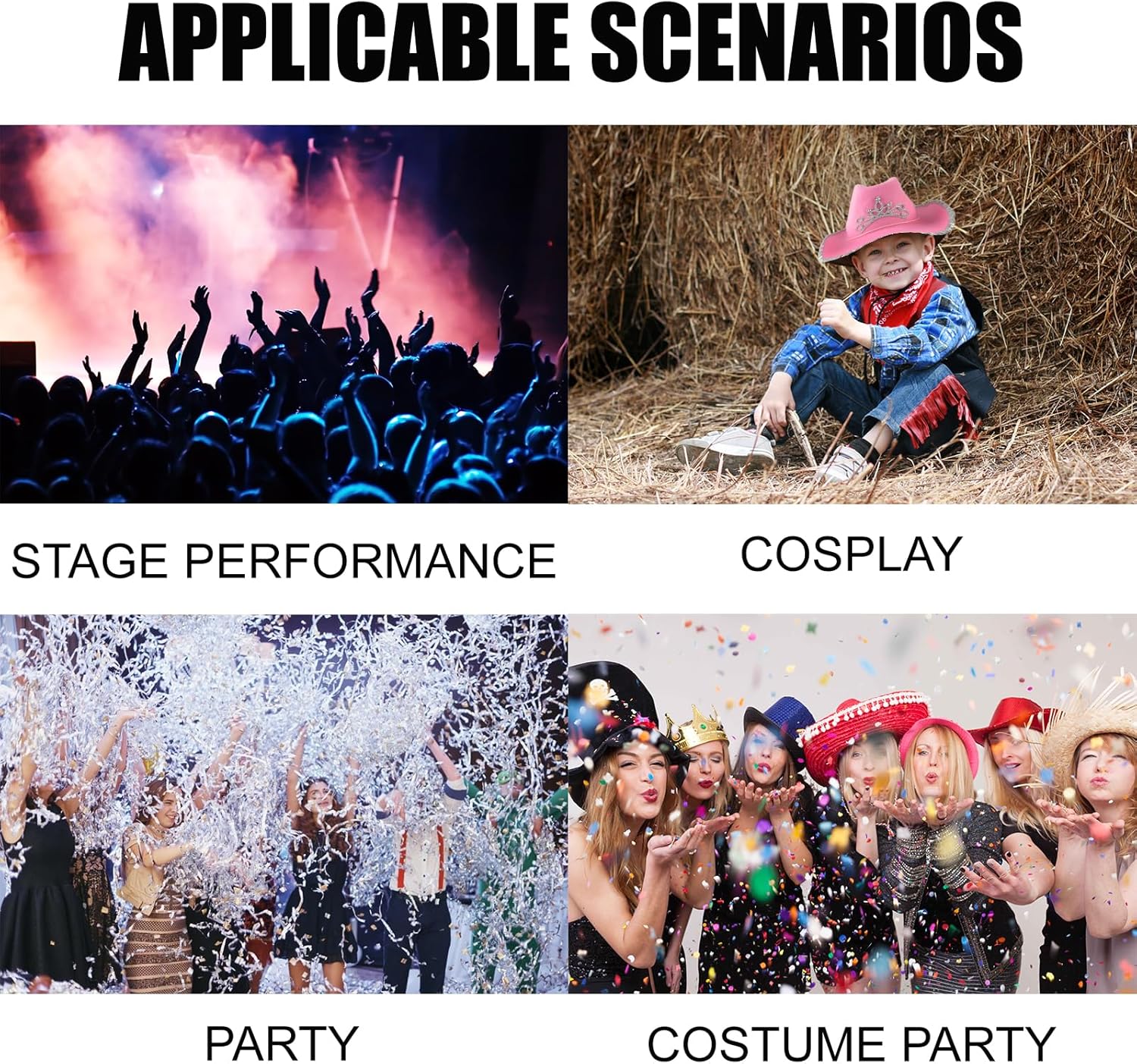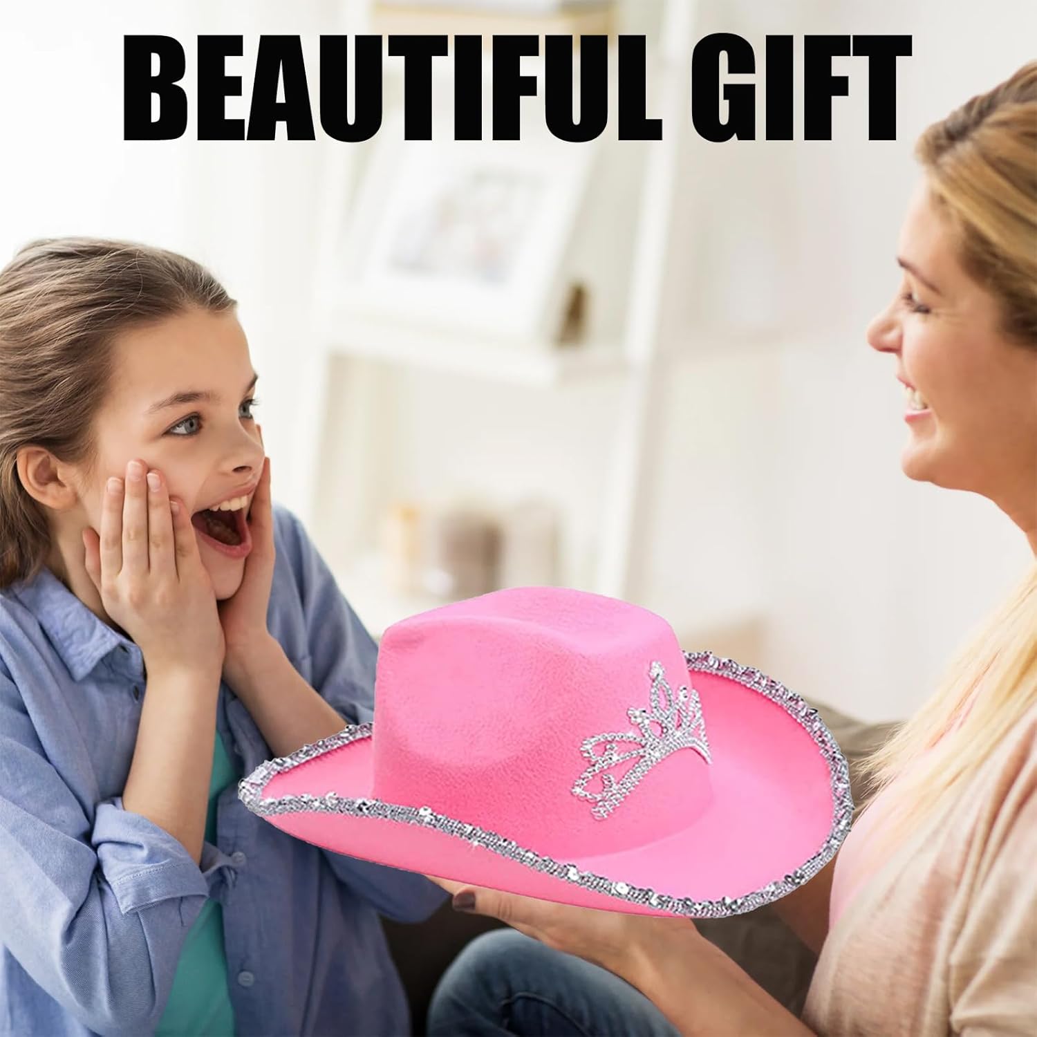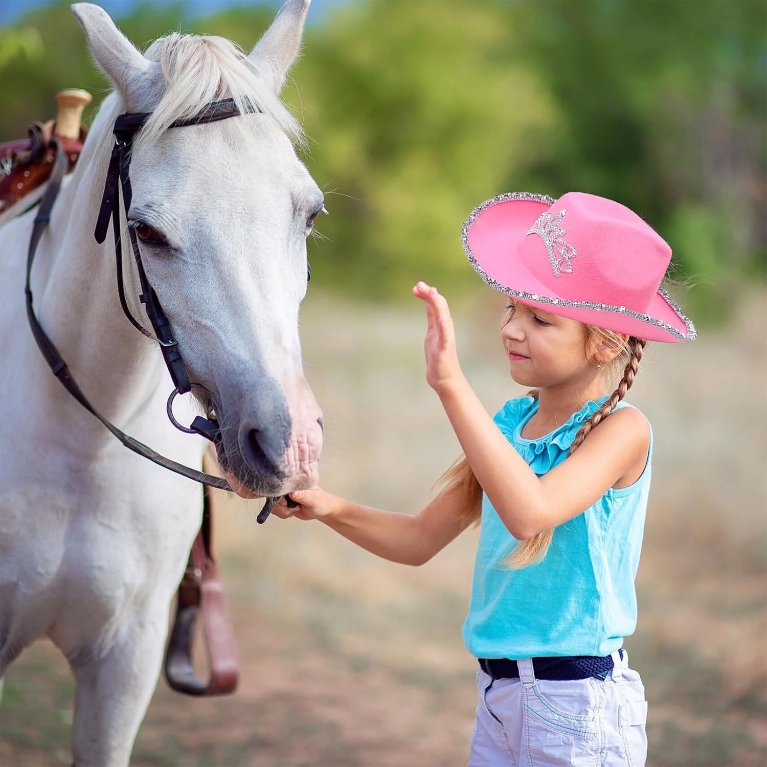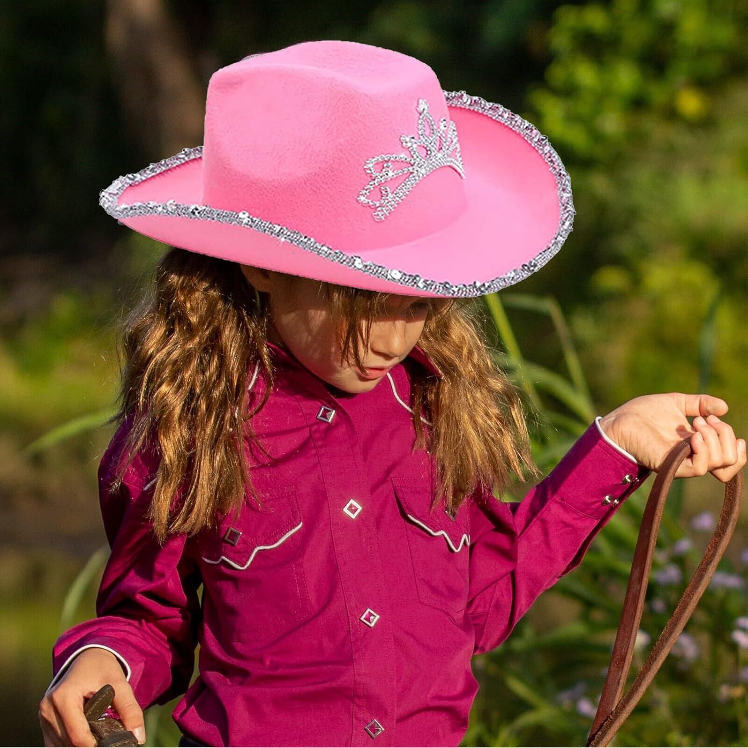 Descrizione prodotto Il set di cappelli da cowgirl rosa è ideale per cosplay o una festa di compleanno a tema cowboy, i cappelli hanno bling bling principessa tiara e orlo glitterato, è perfetto per una festa occidentale, Halloween o semplicemente per divertimento! Indossa il cappello da cowgirl illuminato per avere il miglior costume di Halloween nel selvaggio West! Specifiche tecniche: Materiale: tessuto non tessuto. Colore: Rosa Stile: classico. Genere: da donna. Stagioni adatte: tutte le stagioni Occasioni d'uso: interni ed esterni. Pacchetto incluso: 1 X Pink Cowboy Hat Avviso di sicurezza NO