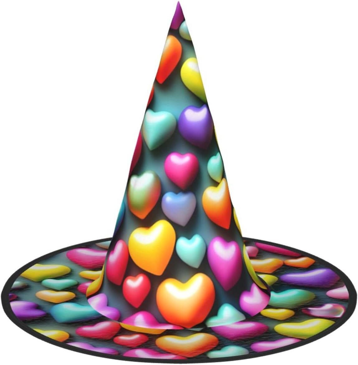Cappello da mago colorato con stampa di cuori arcobaleno per adulti, carnevale, Halloween, feste, feste a tema, cosplay