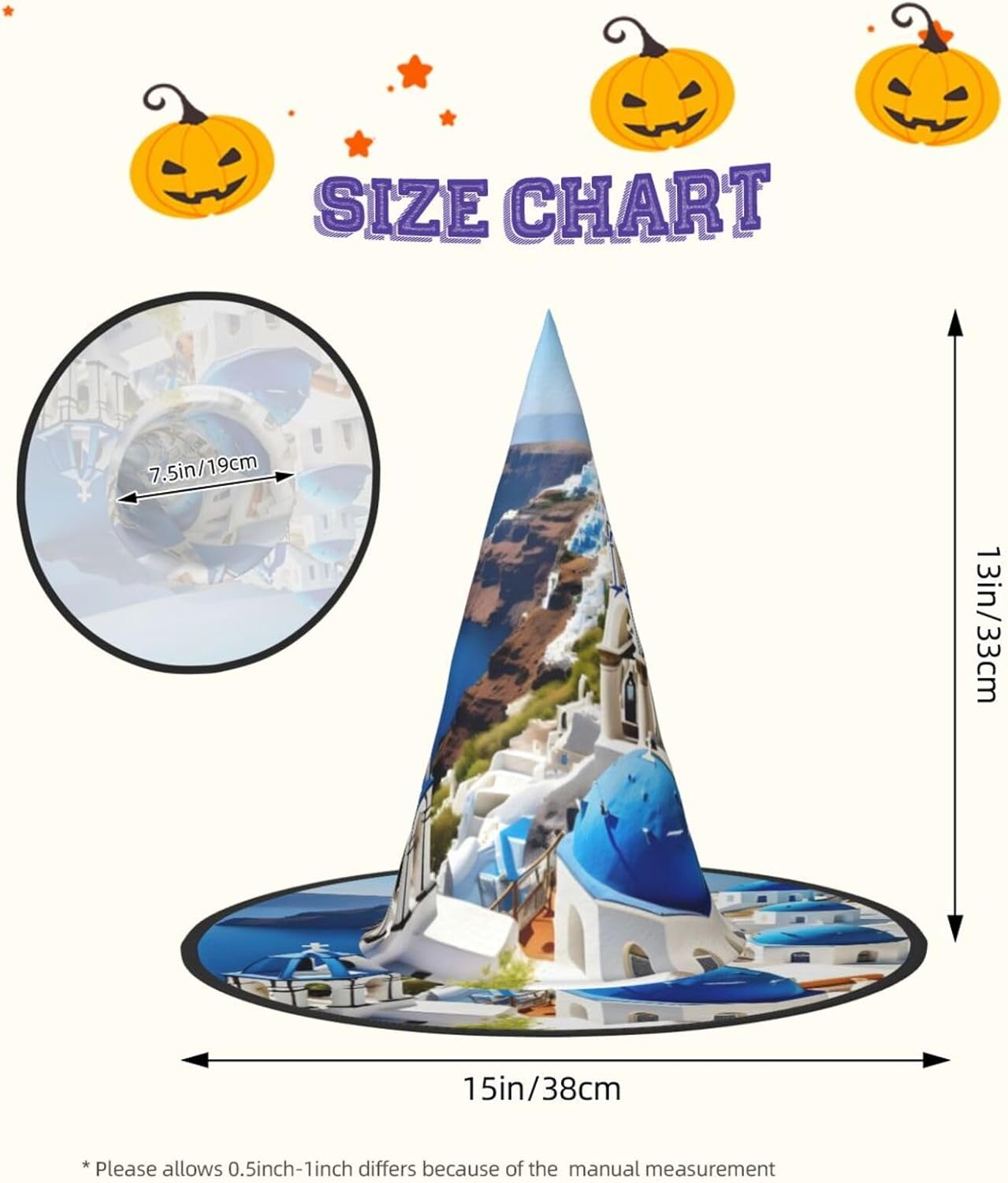 Cappello da mago con stampa con vista sul mare dell'isola greca per adulti, carnevale, Halloween, feste, feste a tema, cosplay