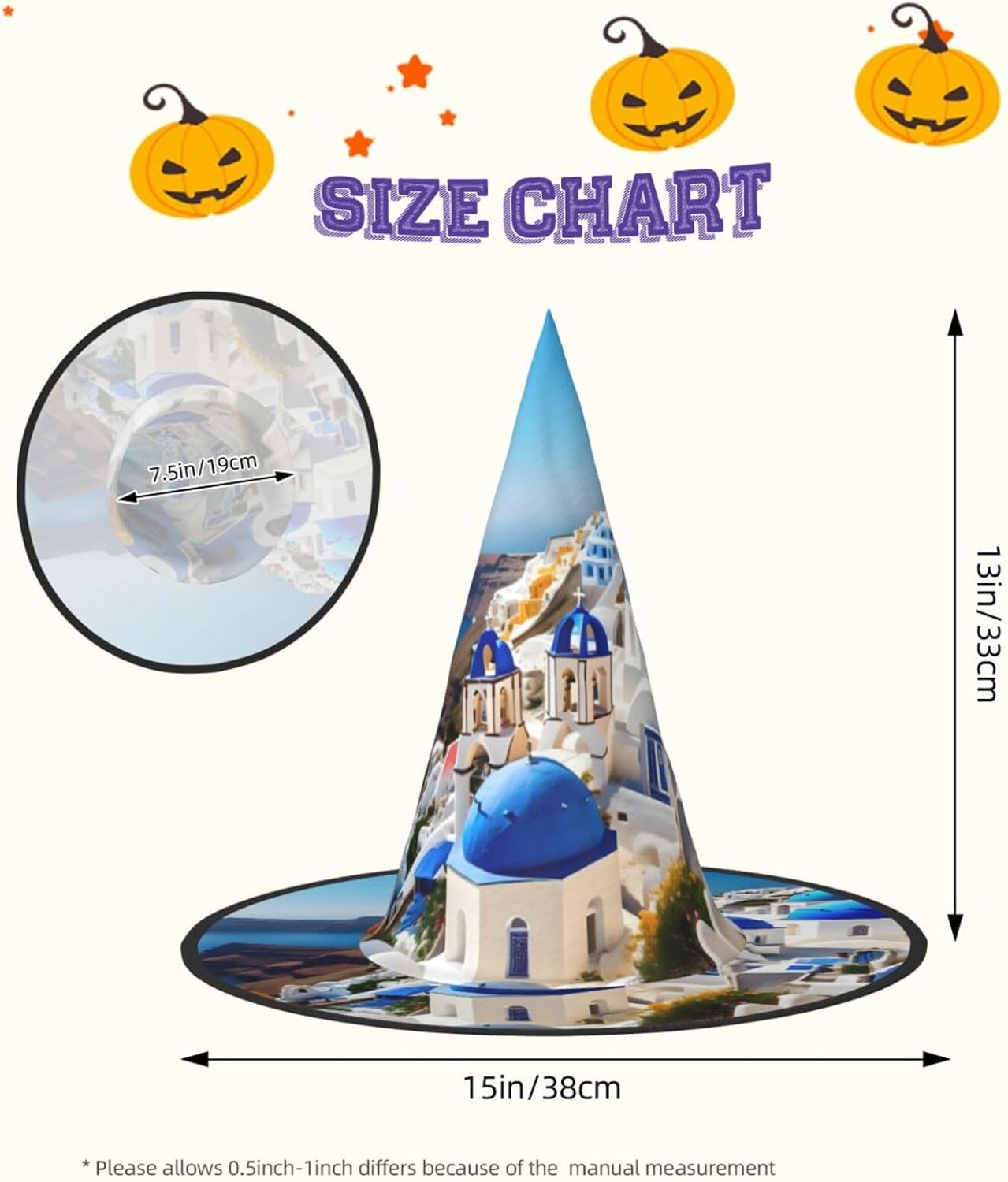 Cappello da mago con stampa dell'isola greca di Santorini con vista sul mare per adulti, carnevale, Halloween, feste, feste a tema, cosplay