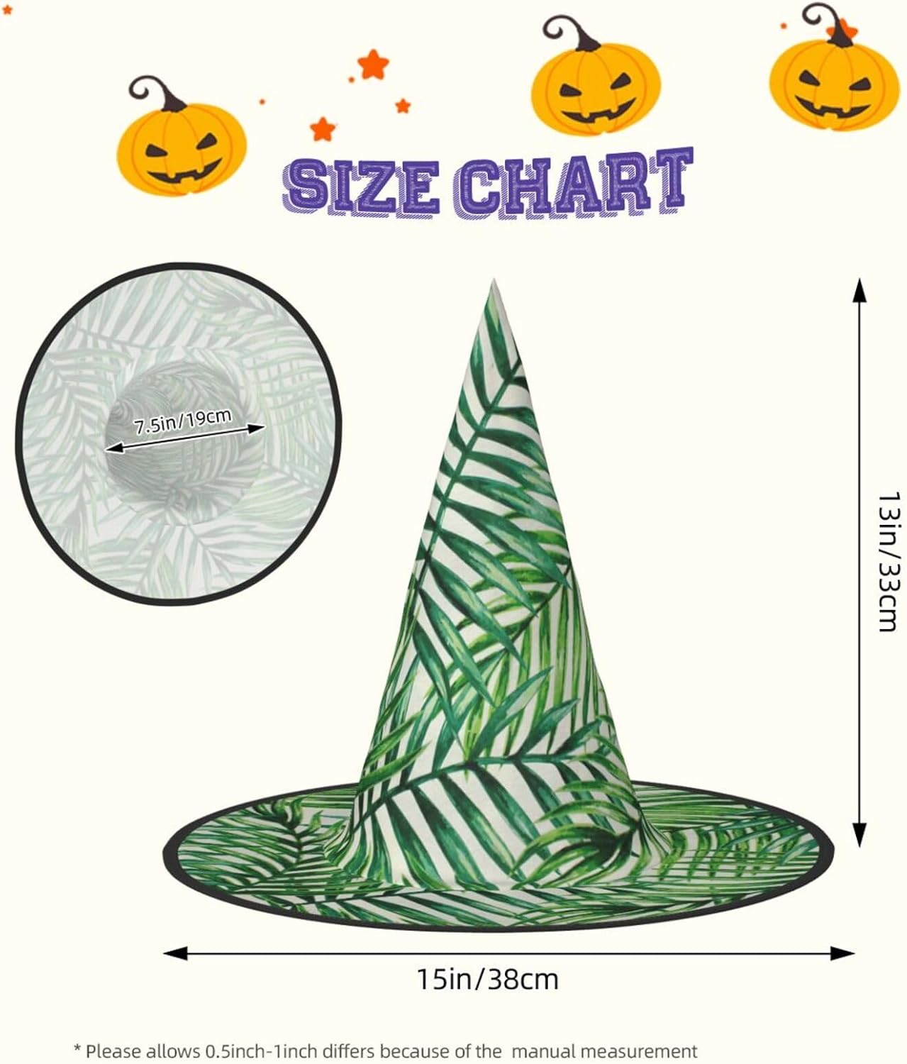 Trasforma la tua festa di Halloween o Carnevale con il nostro cappello da strega di Halloween, progettato per aggiungere stile e divertimento a qualsiasi evento a tema. Alto 33 cm con un diametro esterno impressionante di 38 cm, questo cappello non è solo accattivante ma anche incredibilmente versatile. Realizzato in tessuto Oxford, il cappello offre una vestibilità comoda e una qualità di lunga durata. Il design completamente stampato garantisce che si distingua da qualsiasi folla, mentre la struttura pieghevole consente un facile stoccaggio e trasporto. Che tu stia partecipando a un ballo in maschera, a un evento cosplay o decorando la tua casa per le vacanze, questo cappello da strega sarà l'accessorio. Le dimensioni generose e le funzionalità regolabili lo rendono adatto a un'ampia gamma di utenti, garantendo che tutti possano godere del suo fascino. Aggiungi un tocco di fantasia al tuo outfit o usalo come pezzo decorativo per l'arredamento delle tue vacanze. Migliora la tua esperienza di festa e diventa il centro dell'attenzione con questo fantastico cappello da strega del carnevale di Halloween