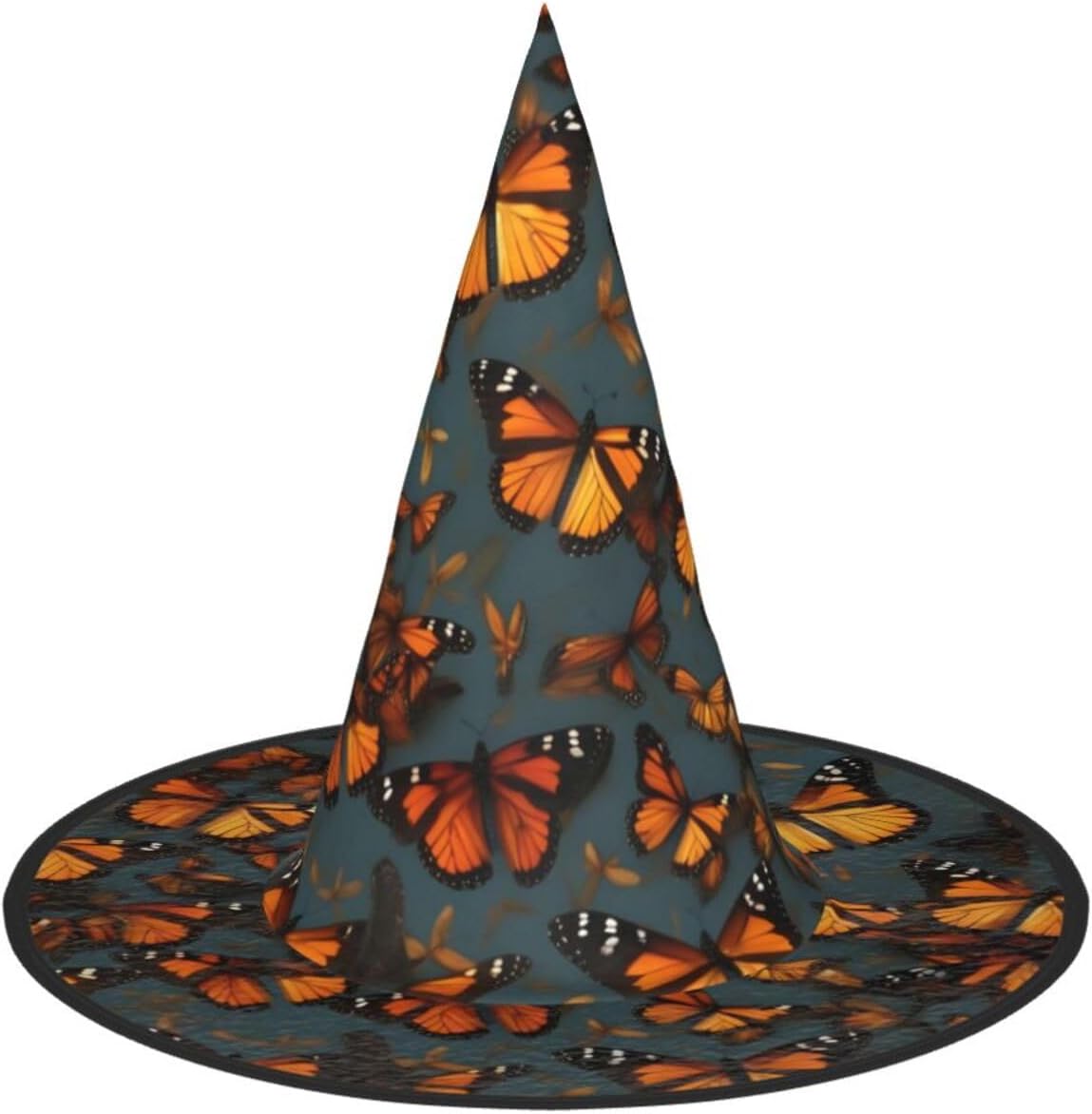 Cappello da mago con stampa monarca arancione e farfalle per adulti, carnevale, Halloween, feste, feste a tema