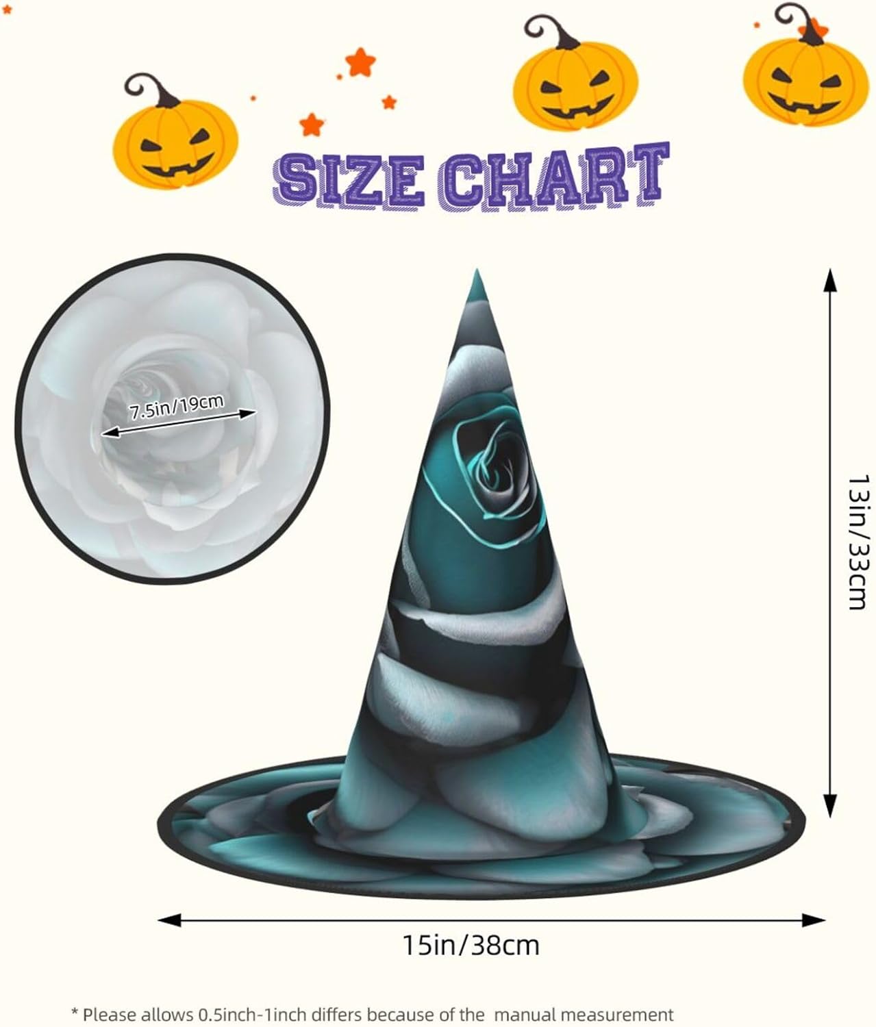 Trasforma la tua festa di Halloween o Carnevale con il nostro cappello da strega di Halloween, progettato per aggiungere stile e divertimento a qualsiasi evento a tema. Alto 33 cm con un diametro esterno impressionante di 38 cm, questo cappello non è solo accattivante ma anche incredibilmente versatile. Realizzato in tessuto Oxford, il cappello offre una vestibilità comoda e una qualità di lunga durata. Il design completamente stampato garantisce che si distingua da qualsiasi folla, mentre la struttura pieghevole consente un facile stoccaggio e trasporto. Che tu stia partecipando a un ballo in maschera, a un evento cosplay o decorando la tua casa per le vacanze, questo cappello da strega sarà l'accessorio. Le dimensioni generose e le funzionalità regolabili lo rendono adatto a un'ampia gamma di utenti, garantendo che tutti possano godere del suo fascino. Aggiungi un tocco di fantasia al tuo outfit o usalo come pezzo decorativo per l'arredamento delle tue vacanze. Migliora la tua esperienza di festa e diventa il centro dell'attenzione con questo fantastico cappello da strega del carnevale di Halloween