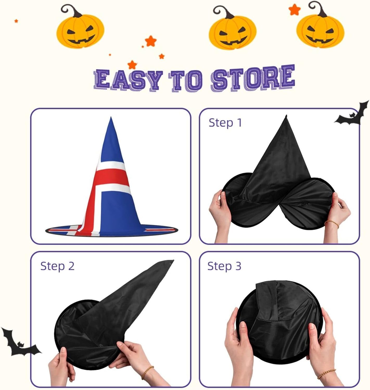 Cappello da mago stampato con bandiera dell'Islanda per adulti, carnevale, Halloween, feste, feste a tema, cosplay