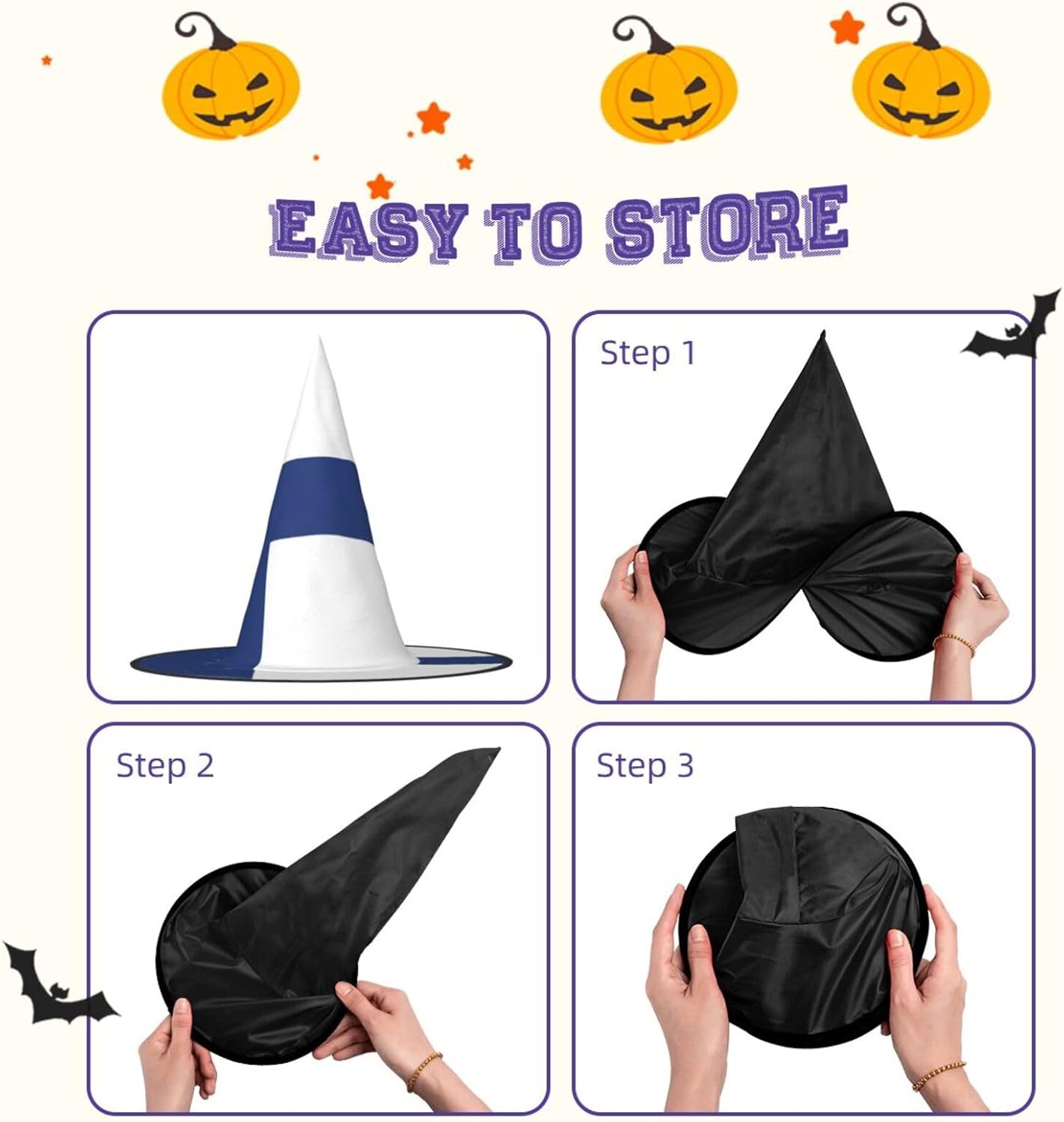 Trasforma la tua festa di Halloween o Carnevale con il nostro cappello da strega di Halloween, progettato per aggiungere stile e divertimento a qualsiasi evento a tema. Alto 33 cm con un diametro esterno impressionante di 38 cm, questo cappello non è solo accattivante ma anche incredibilmente versatile. Realizzato in tessuto Oxford, il cappello offre una vestibilità comoda e una qualità di lunga durata. Il design completamente stampato garantisce che si distingua da qualsiasi folla, mentre la struttura pieghevole consente un facile stoccaggio e trasporto. Che tu stia partecipando a un ballo in maschera, a un evento cosplay o decorando la tua casa per le vacanze, questo cappello da strega sarà l'accessorio. Le dimensioni generose e le funzionalità regolabili lo rendono adatto a un'ampia gamma di utenti, garantendo che tutti possano godere del suo fascino. Aggiungi un tocco di fantasia al tuo outfit o usalo come pezzo decorativo per l'arredamento delle tue vacanze. Migliora la tua esperienza di festa e diventa il centro dell'attenzione con questo fantastico cappello da strega del carnevale di Halloween