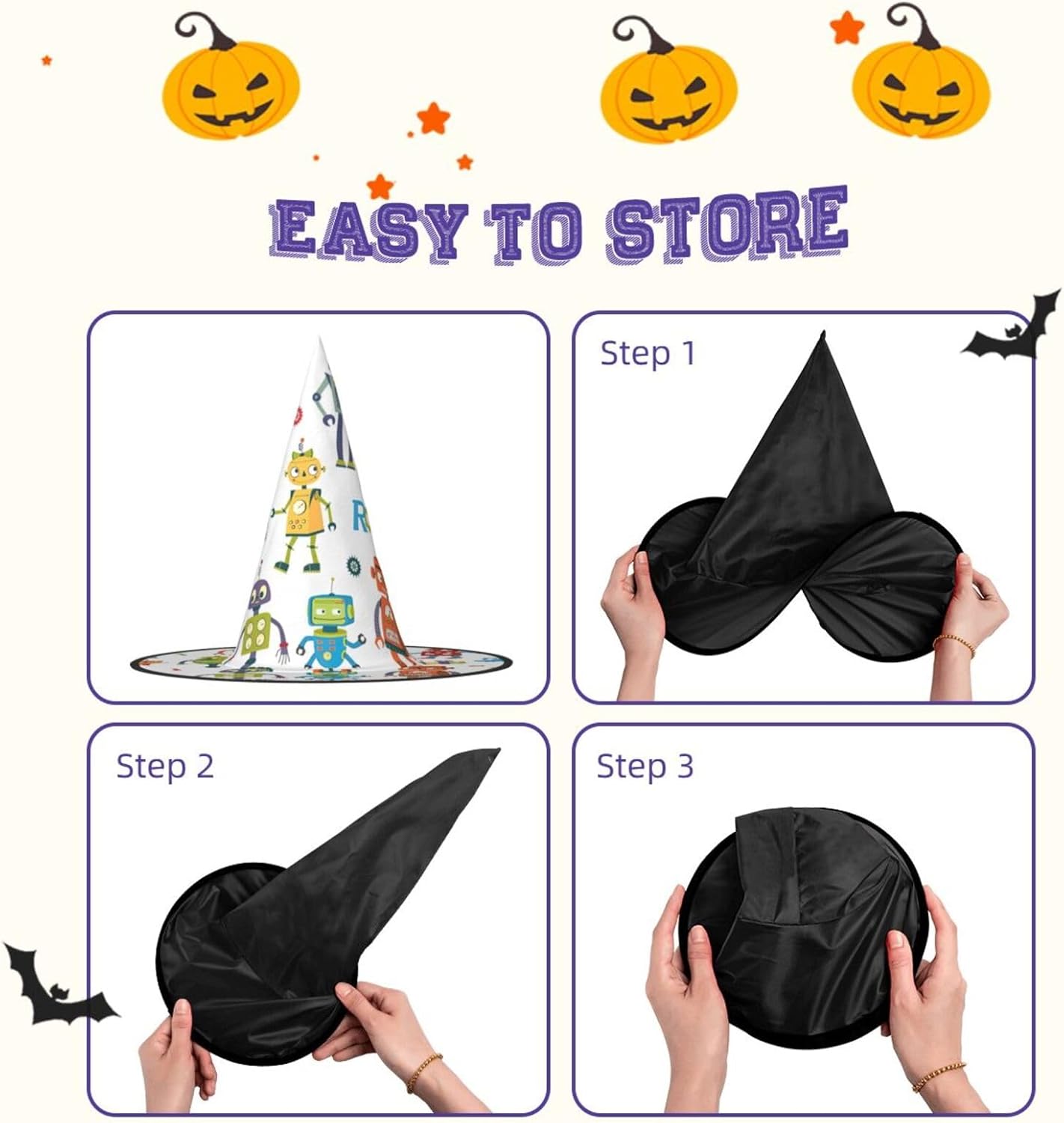 Cappello da mago stampato con robot simpatico cartone animato per adulti, carnevale, Halloween, feste, feste a tema, cosplay