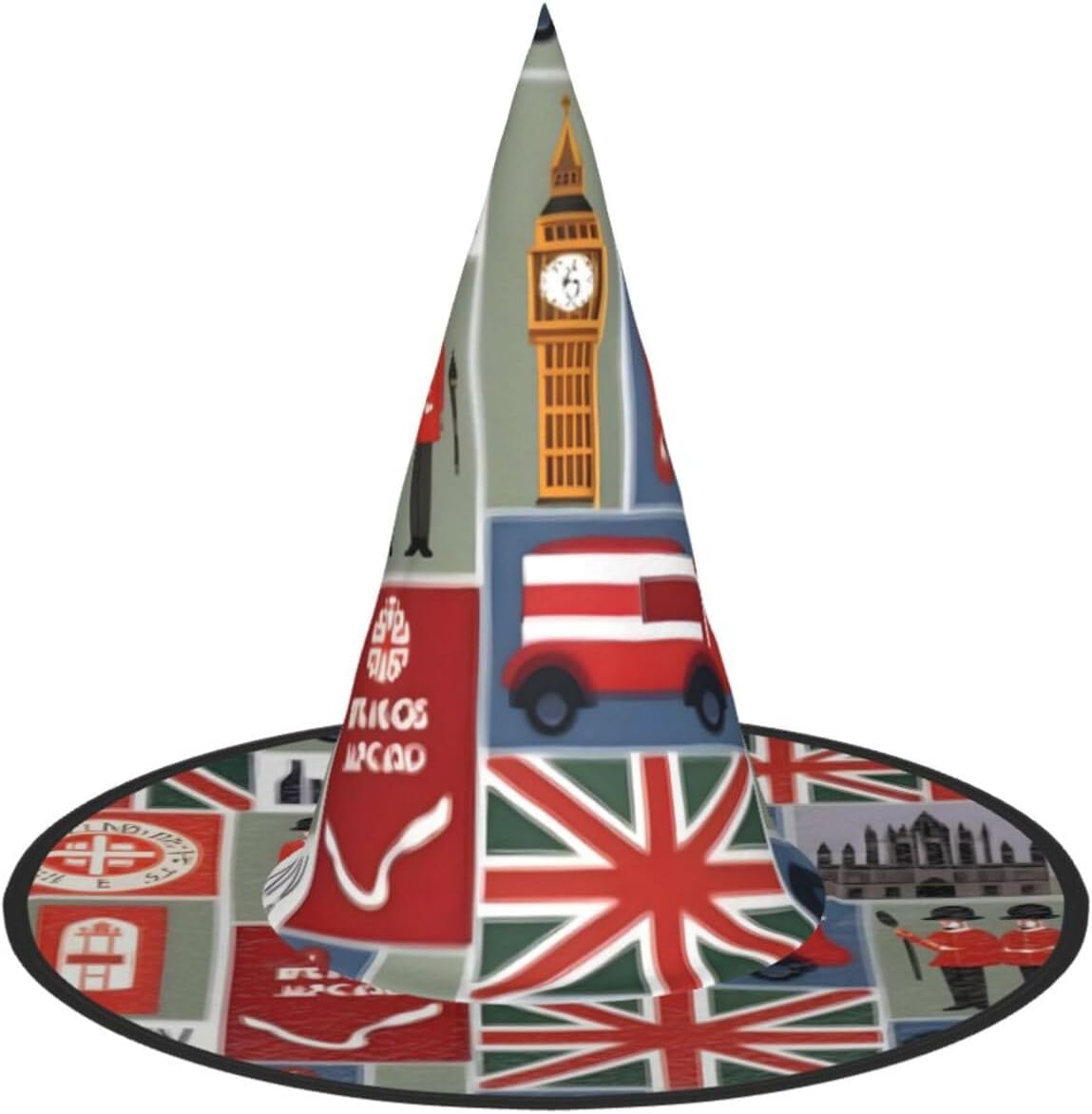 Cappello da mago stampato con simboli dell'Inghilterra per adulti, carnevale, Halloween, feste, feste a tema, cosplay