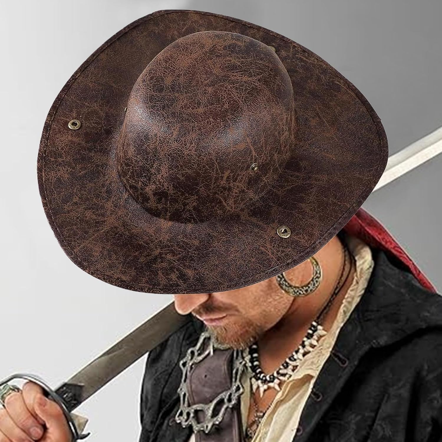Cappello da pirata - Cappello Coloniale A Triangolo In Pelle - Accessorio per costumi per spettacoli teatrali, feste in maschera, recite scolastiche, raduni familiari, feste, compleanni, festival, cos