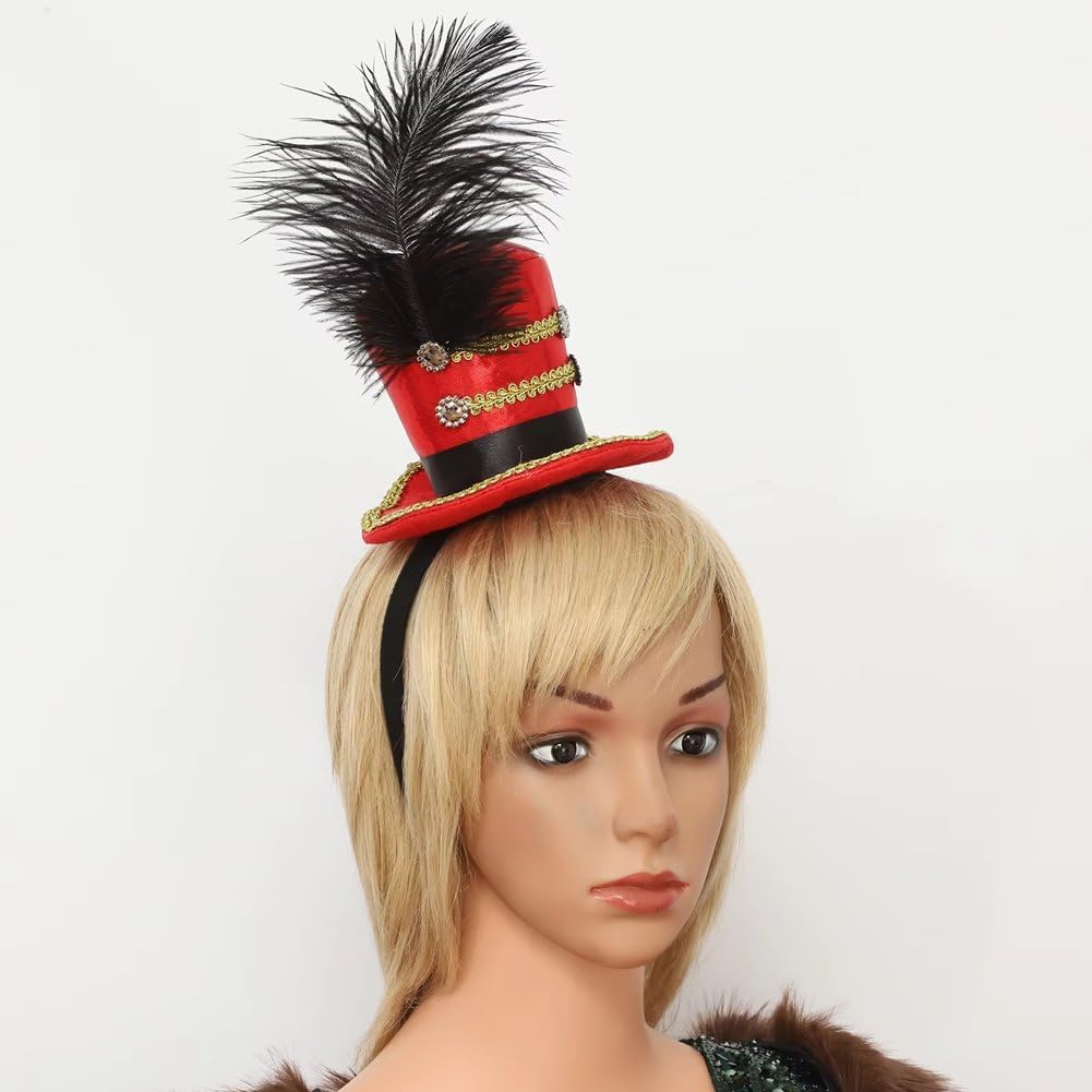 È realizzato in una miscela di poliestere e plastica, leggero e resistente, garantendo una lunga durata. È adatto sia per adulti che per bambini, rendendolo un ottimo accessorio per famiglie per costumi di gruppo. Perfetto per varie occasioni come feste, spettacoli circensi, circhi, tea party, Halloween e carnevali per farti distinguere dalla massa. Il design con decorazioni in piume del mini cappello attira davvero l'attenzione e può aggiungere un tocco di eleganza e giocosità al tuo look. La fascia è disponibile in diversi colori, quindi puoi scegliere un colore in base al tuo costume e alle tue preferenze.