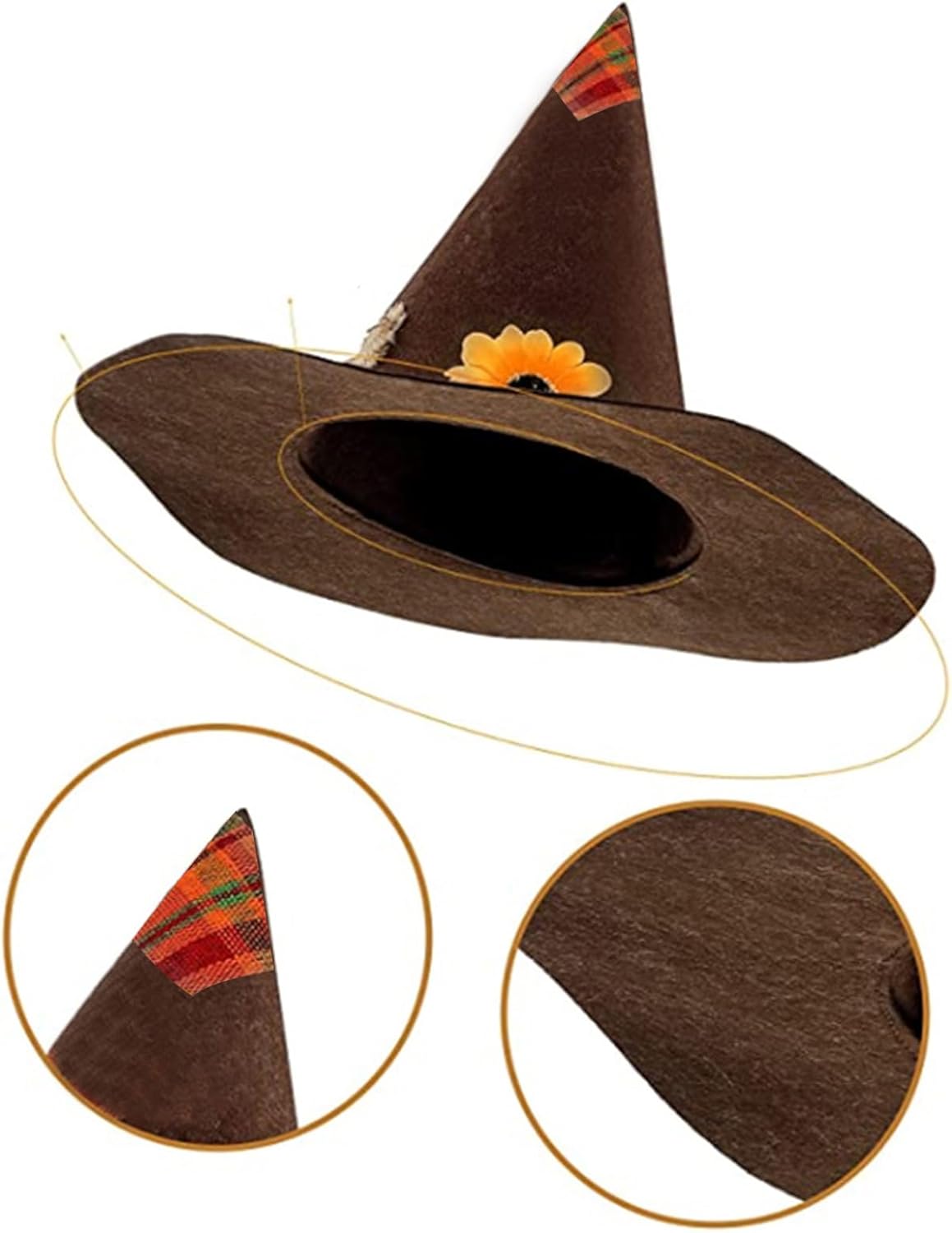 Cappello da spaventapasseri - Accessorio per costume da spaventapasseri - Cappello da mago per adulti, uomini, donne, bambini per cosplay, feste, costumi di Halloween Caratteristiche: I cappelli da spaventapasseri sono morbidi e comodi, compatti e facili da trasportare, non portano peso quando li indossi, cosplay di Halloween durevole: I cappelli da corvo spaventosi per adulti e bambini sono adatti con altri tipi di accessori di Halloween, come costumi da mago, costumi da strega, ornamenti di zucca, decorazioni di corvo, mantelli, ecc. Abbellisci i tuoi vestiti di Halloween, rendi i tuoi vestiti riconoscibili e più accattivanti, così impressionare gli ospiti, aggiungendo un tocco gioioso e misterioso alle feste. Dimensioni adeguate per adattarsi a varie persone, dimensioni adatte alla maggior parte degli adulti. Ampiamente usato: il cappello spaventapasseri può essere utilizzato per molte occasioni, come feste di Halloween, raccolto, feste di cosplay, spettacoli teatrali, feste di compleanno, mascherate, ecc. È anche una bella decorazione per la tua stanza o fattoria, per darti una sensazione autunnale. Specifiche: Dimensioni approssimative: diametro esterno: 40 cm, diametro interno: 19 cm, altezza: 27 cm. Colore: nero/caffè/marrone. Contenuto della confezione: 1 cappello da spaventapasseri. Nota: si prega di consentire un errore di 1-2 cm dovuto alla misurazione manuale. Si prega di ordinare solo se si accetta questo margine di errore. Il colore dell'articolo può variare dalla foto a seconda delle impostazioni di visualizzazione e luminosità del computer.