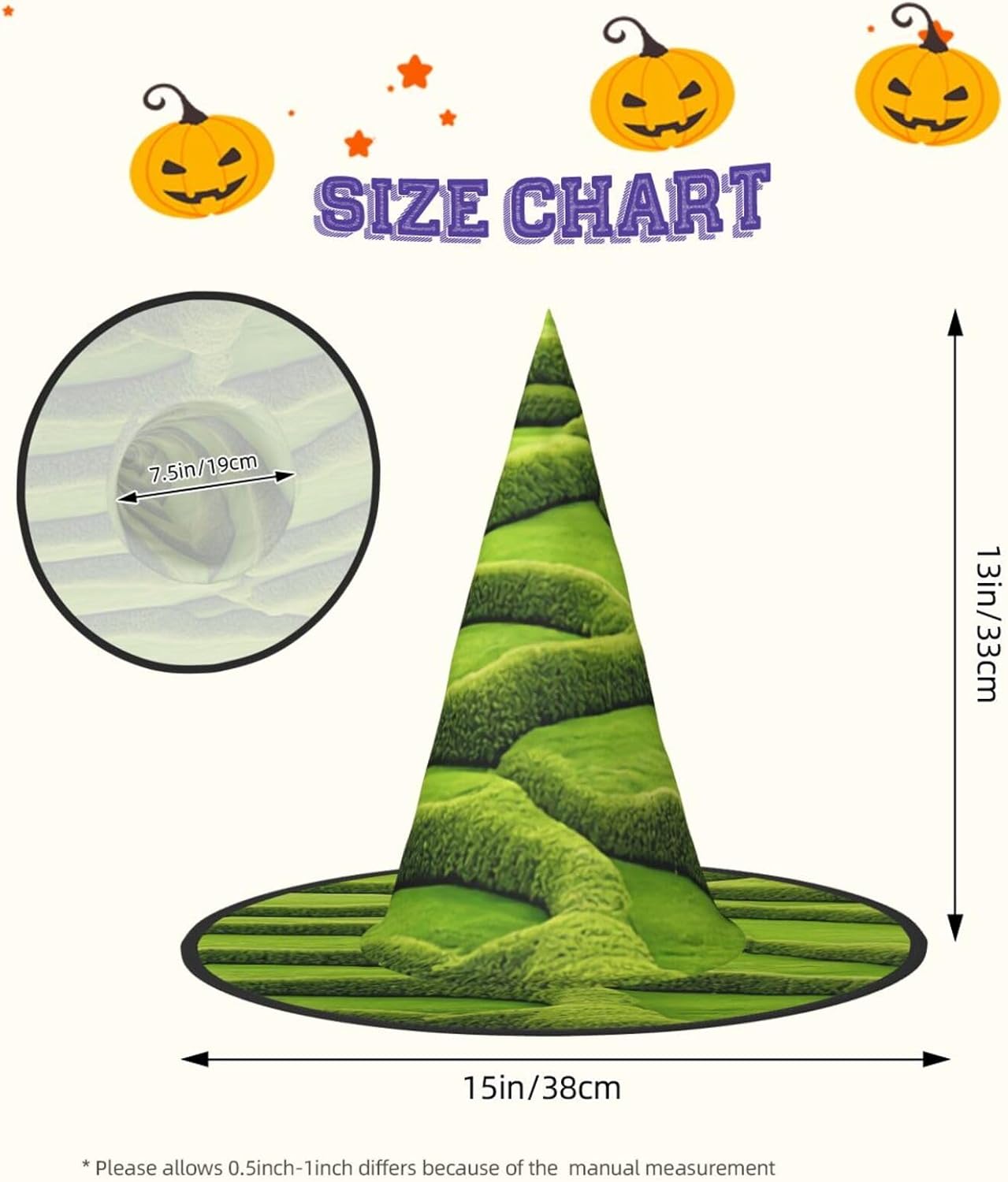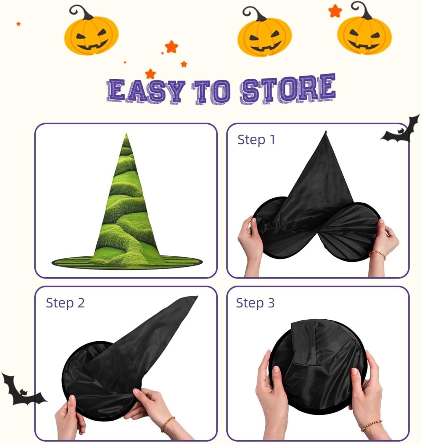 Cappello da strega da donna, cappello pieghevole a punta per Halloween, decorazione per feste, 1 pezzo, rivestimento in pietra di muschio
