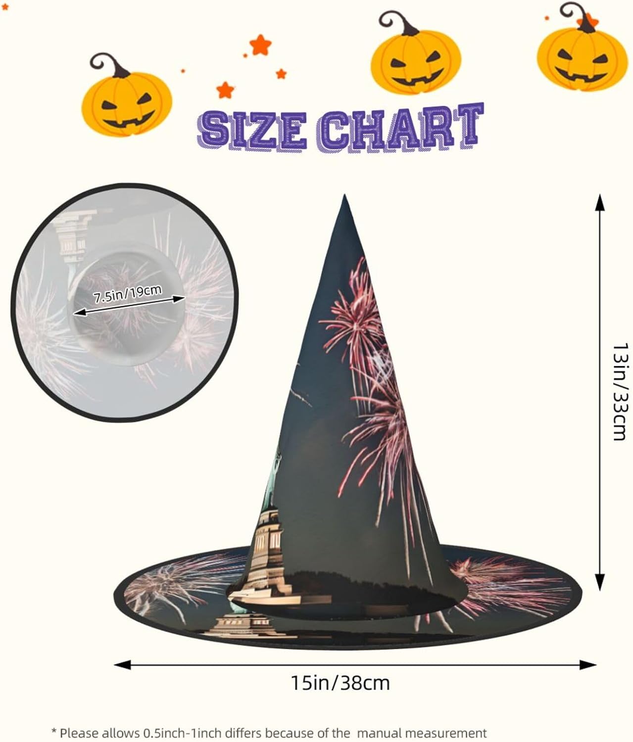 Cappello da strega da donna, cappello pieghevole a punta per la decorazione di feste di Halloween, 1 pezzo - Bandiera della Statua della Libertà
