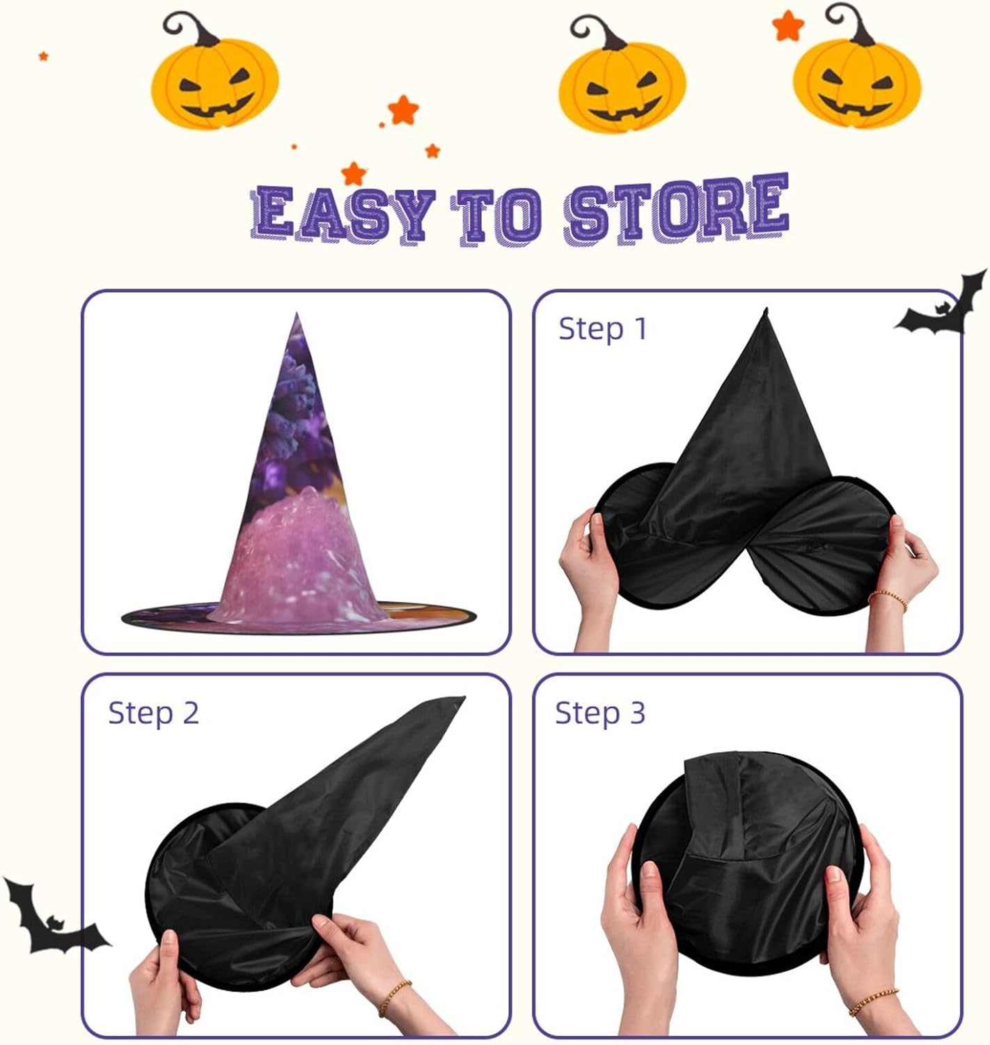 Cappello da strega da donna con guglia a punta, pieghevole, per decorazioni per feste di Halloween, 1 pezzo, fiore di lavanda e sale spa