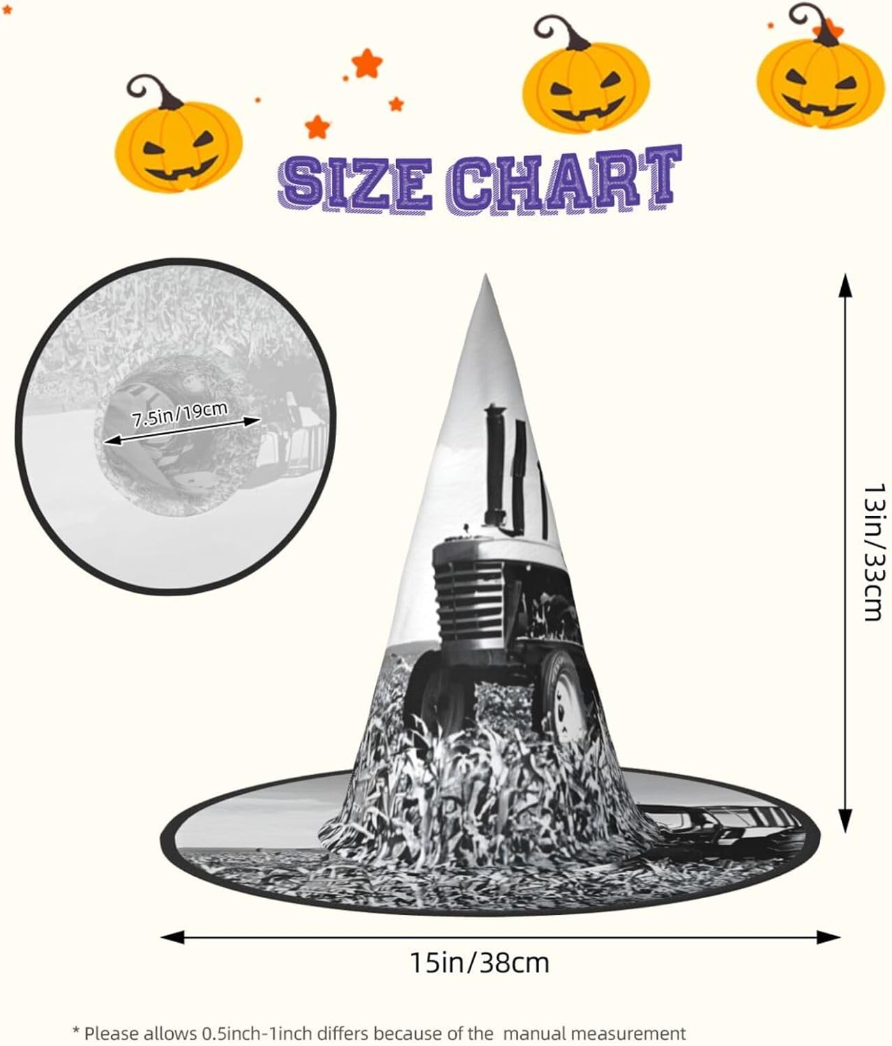 Cappello da strega da donna con guglia a punta, pieghevole, per decorazioni per feste di Halloween, 1 pezzo, trattore agricoltura tranquilla