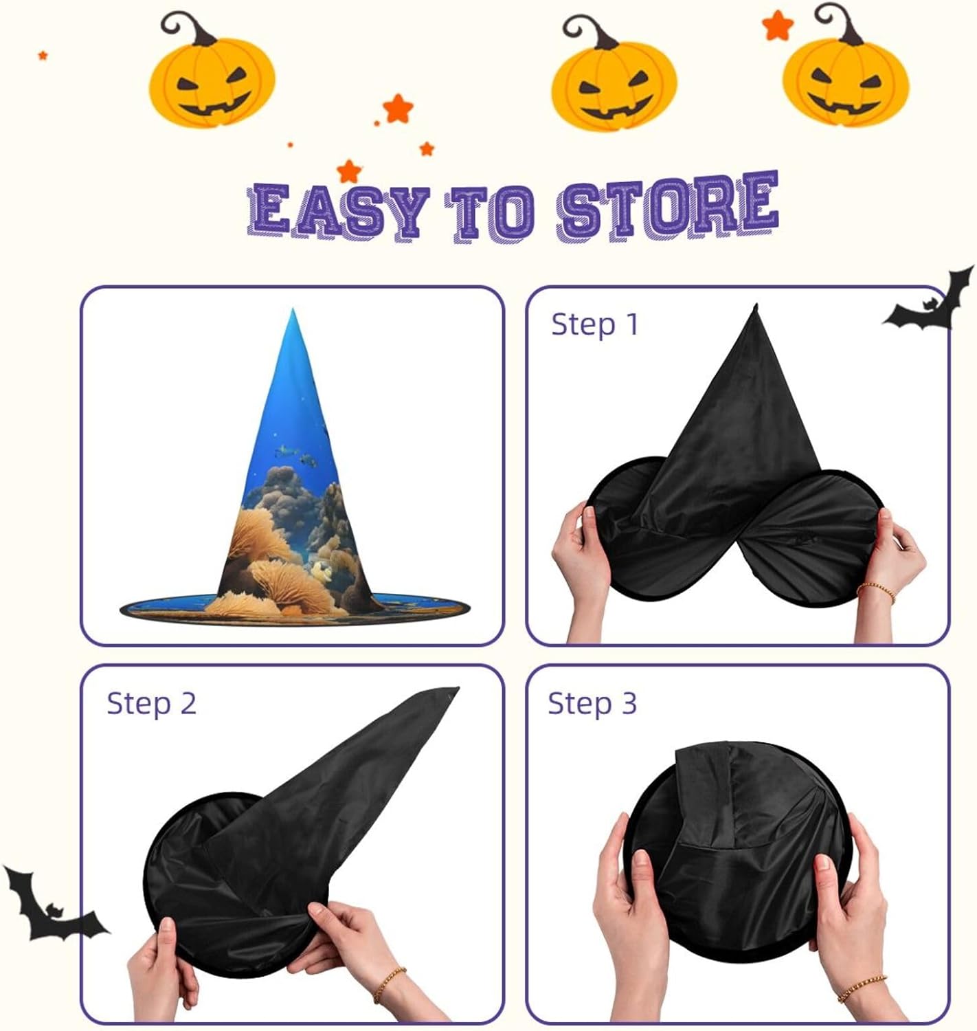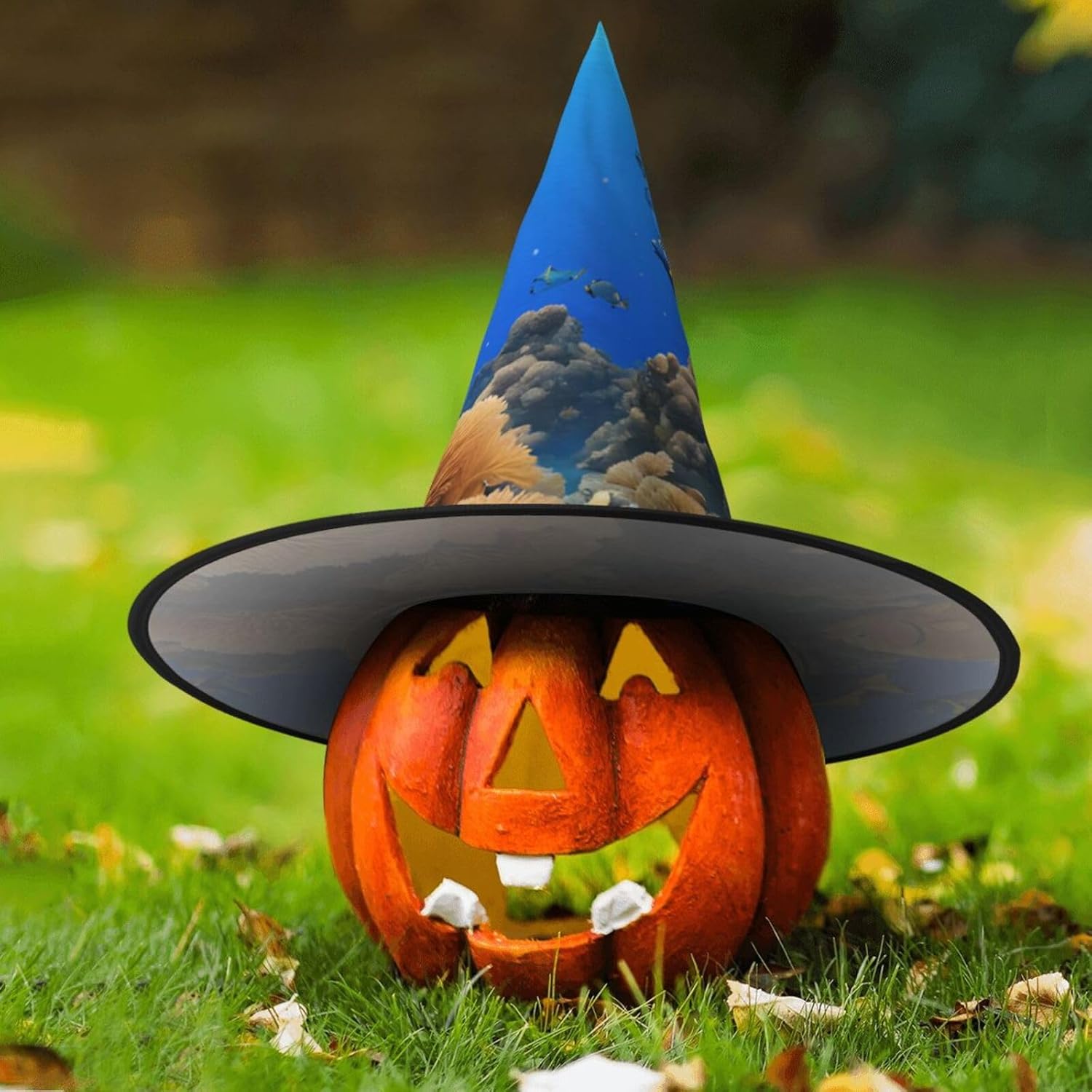 Cappello da strega da donna con guglia a punta pieghevole per decorazioni per feste di Halloween 1 PZ - Motivo pesce