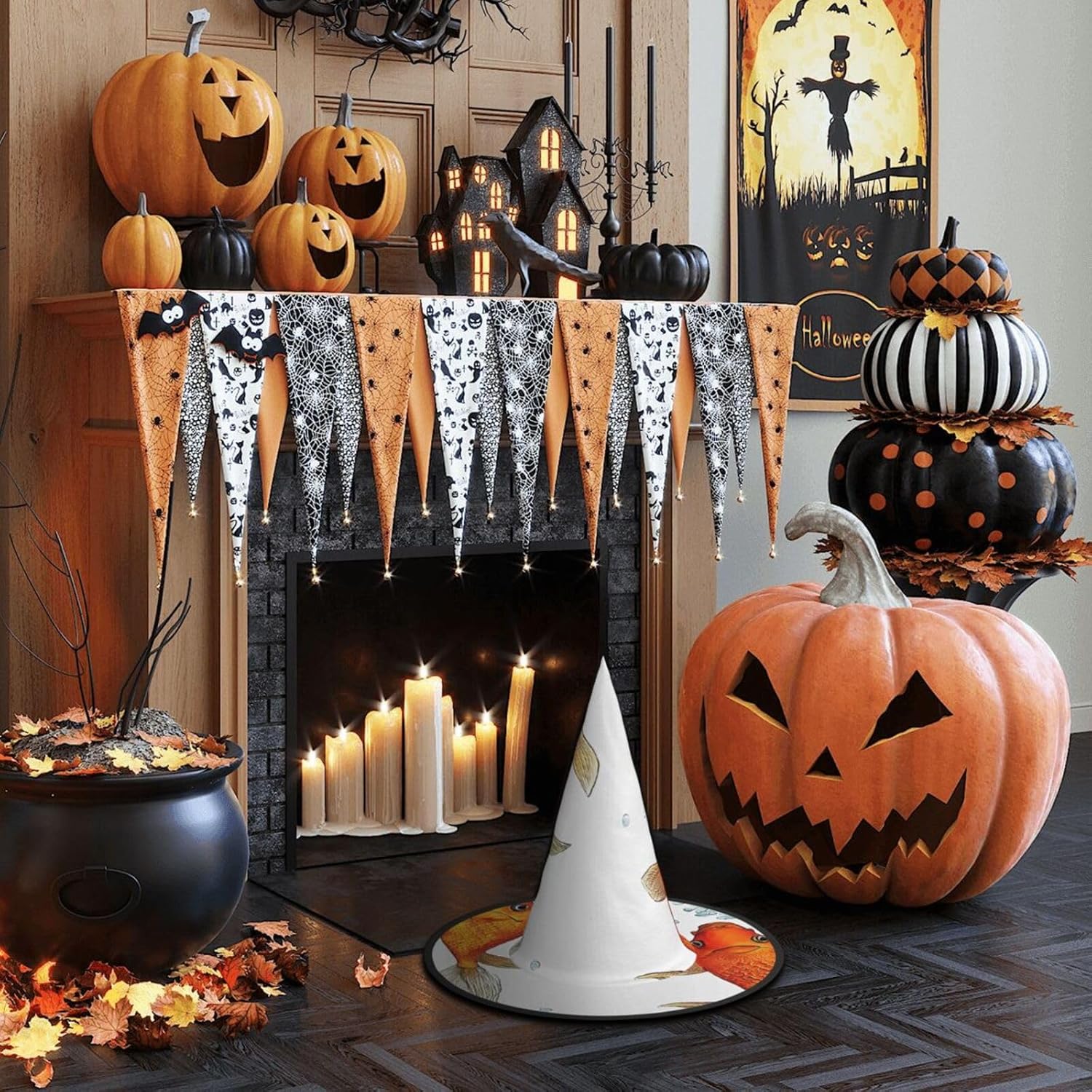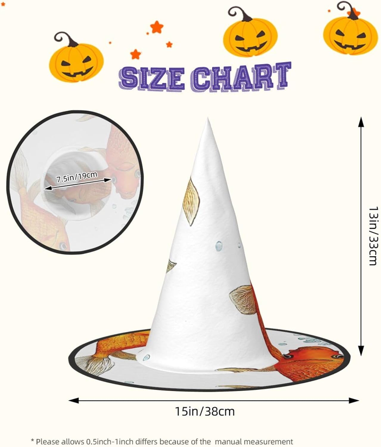 Cappello da strega da donna con guglia a punta pieghevole per decorazioni per feste di Halloween 1PCS - Carino pesce rosso
