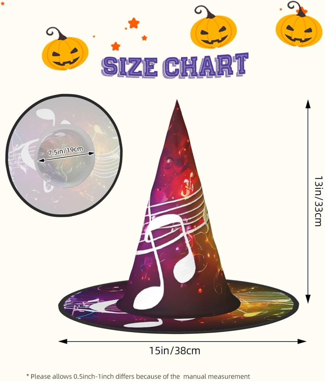 Cappello da strega da donna con guglia a punta pieghevole per decorazioni per feste di Halloween 1PCS - Nota musicale