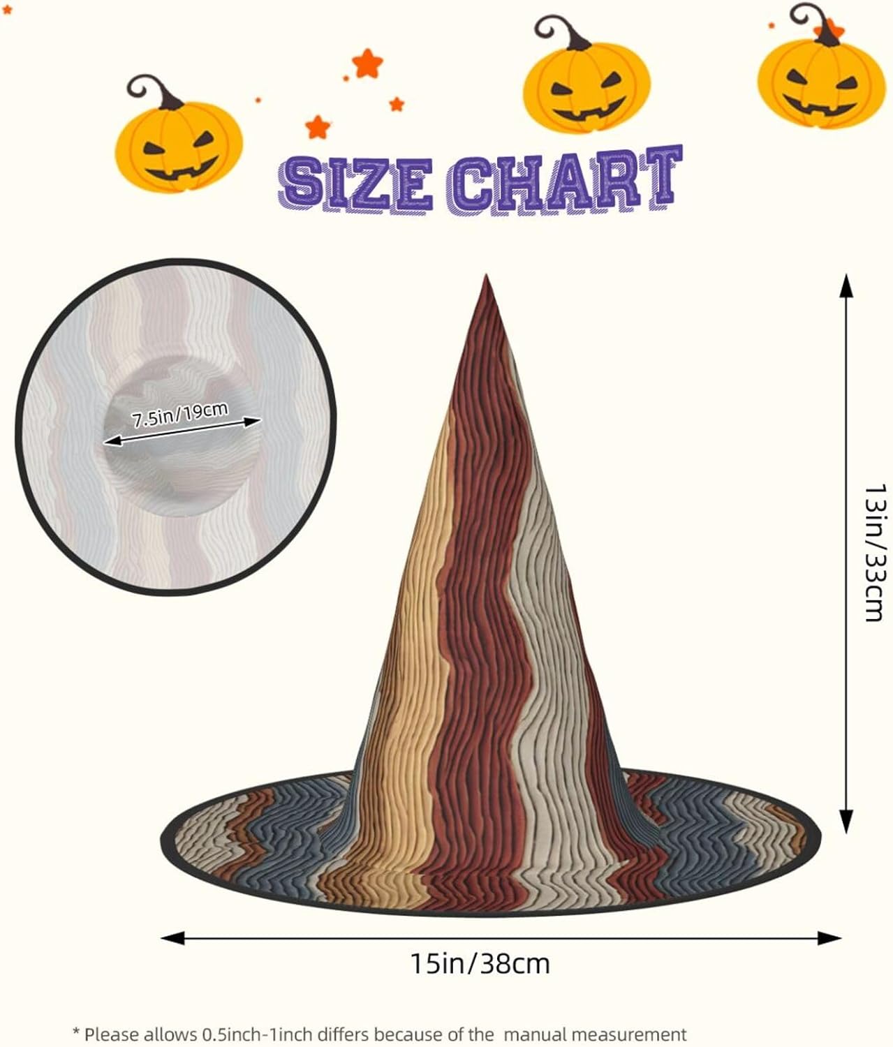 Cappello da strega da donna con guglia a punta pieghevole per decorazioni per feste di Halloween 1PCS - strisce colorate