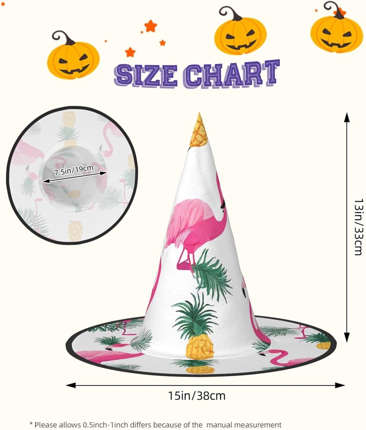 Cappello da strega da donna con guglia, pieghevole, per decorazioni per feste di Halloween, 1 pezzo, fenicottero e ananas