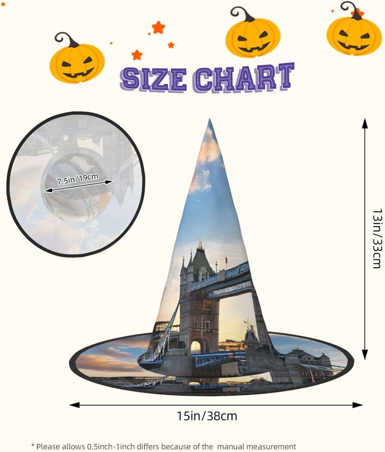 Cappello da strega da donna con guglia, pieghevole, per decorazioni per feste di Halloween, 1 pezzo, Tower Bridge a Londra