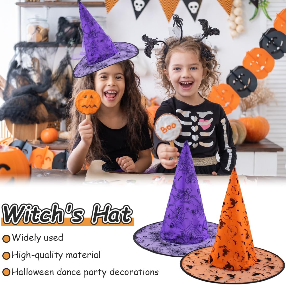 CONFEZIONE DA 2. La confezione contiene un cappello da strega arancia e uno viola TAGLIA IDEALE: taglia unica adatta alla maggior parte degli adulti e degli adolescenti. Altezza: 38 cm, diametro esterno: 41 cm, diametro interno: 19 cm FATTO DI QUALITÀ: i cappelli sono resistenti e non si strappano facilmente UTILIZZO VERSATILE: i nostri cappelli da strega sono un'ottima aggiunta ai costumi di Halloween, ai travestimenti natalizi e ad altre feste a tema. Completa qualsiasi vestito da strega o personaggio dei cartoni animati Servizio eccellente: Se avete domande, non esitate a contattarci, risolveremo il problema entro 24 ore