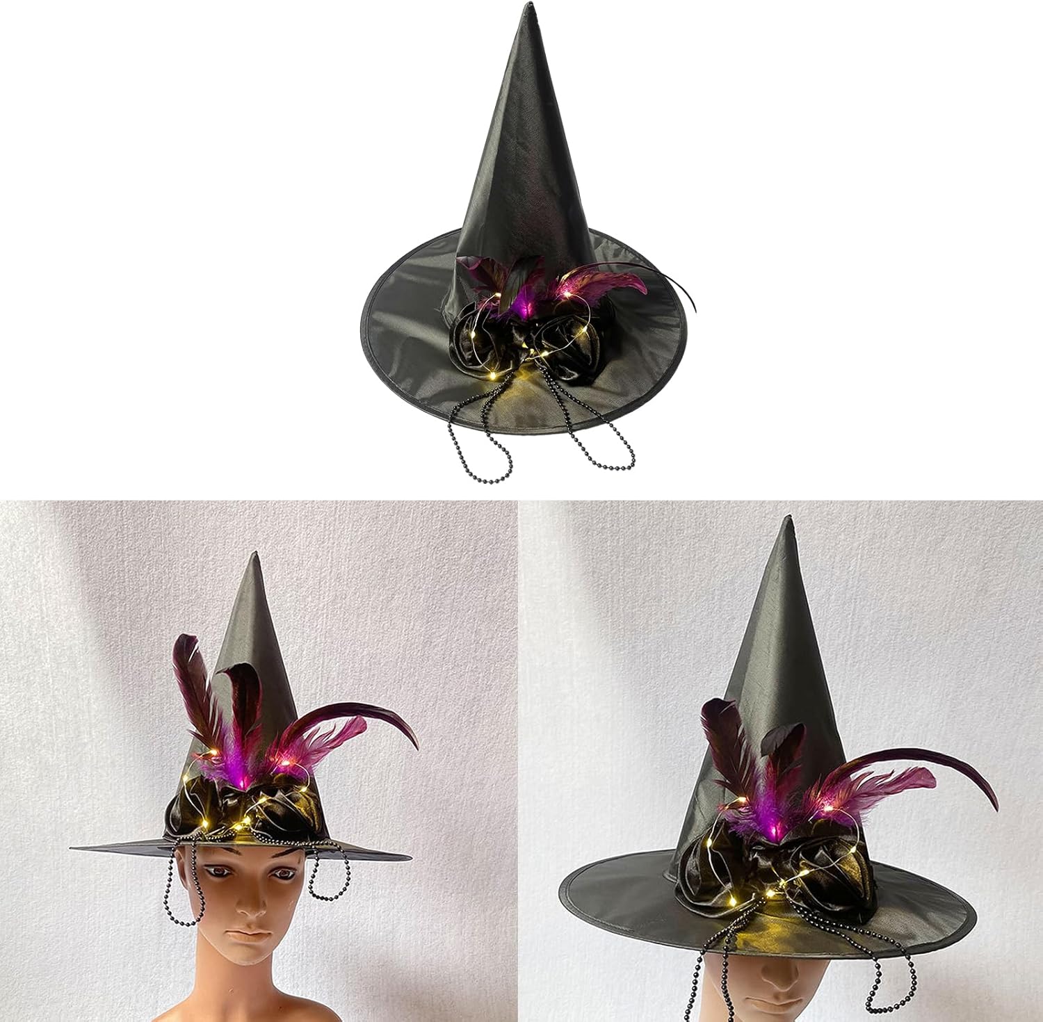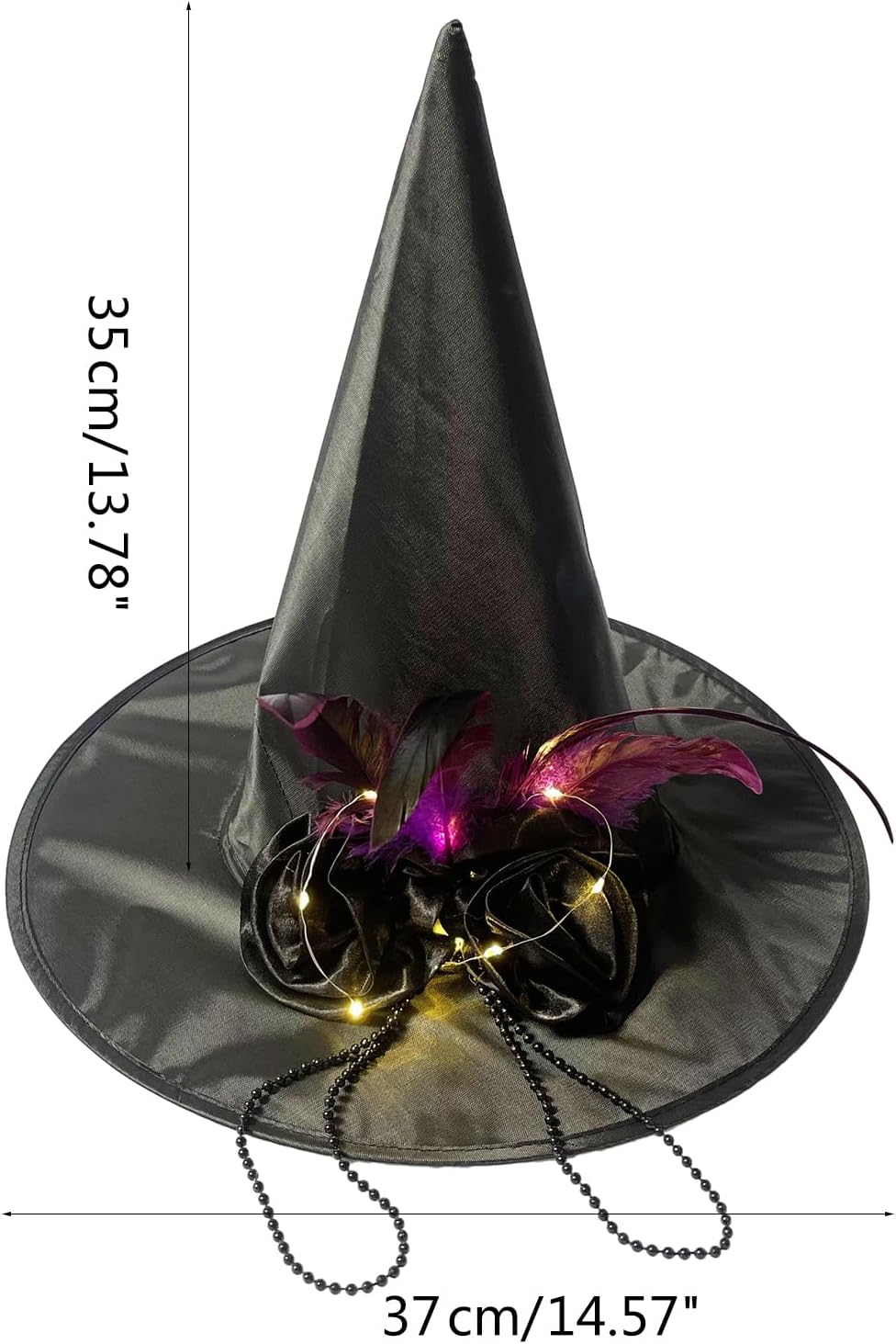 Cappello da strega di Halloween, nero, per donne e ragazze, accessorio per costume da strega, per cosplay, illuminato, cappello a punta Caratteristiche: Il cappello da strega è un panno di qualità leggero, morbido, antimacchia e comodo da indossare. Design unico: colore nero, decorazione rosa per renderlo più affascinante, misterioso e drammatico, cattura gli occhi degli altri e migliora il festival Ampia applicazione, il cappello da strega nero è adatto per Halloween, feste cosplay, feste in costume, cosplay, feste in maschera e molto altro ancora. È anche una grande decorazione per Halloween, aggiungere le vacanze portare di più e divertimento, fare ricordi impressionanti. Dimensioni: i cappelli da strega con il diametro interno di 19 cm e l'altezza di 35 cm, diametro esterno inferiore 37 cm, adatti per la maggior parte delle persone da indossare e abbinare al loro costume ad Halloween. Meraviglioso dolce caldo amico famiglia o te stesso. Specifiche tecniche: tessuto. Illuminazione, Normale La confezione include: 1 cappello da strega per Halloween. Nota: Considerare un margine di errore di 1-2 cm dovuto alla misurazione manuale. A causa della differenza tra i diversi monitor, l'immagine potrebbe non rispecchiare il colore reale dell'articolo.