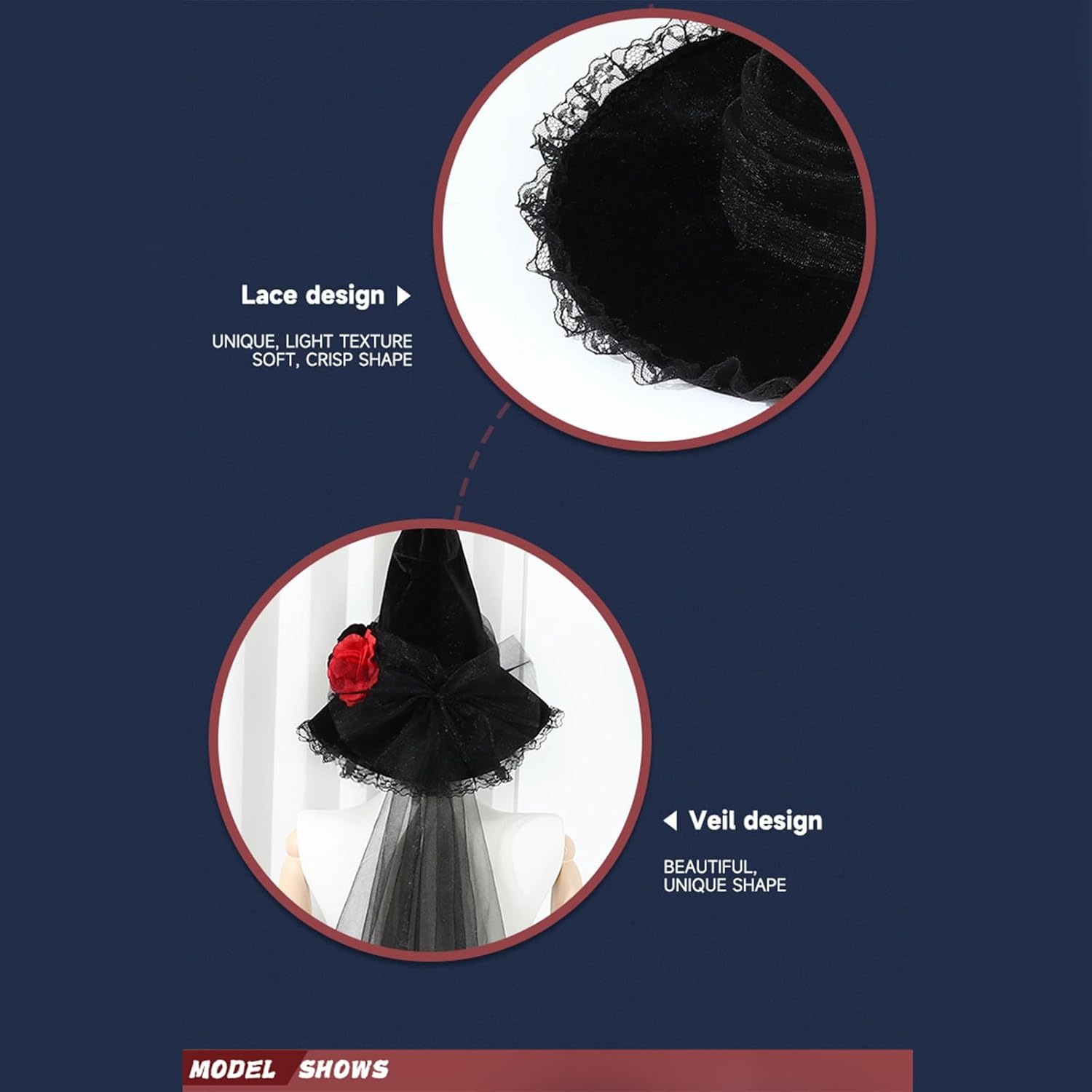 Caratteristiche: Questo cappello da strega presenta un design distintivo, garantendo comfort e traspirabilità. Perfetto per feste a tema Halloween. Utilizza tessuto selezionato, questo cappello da strega nero offre una vestibilità comoda e regola le dimensioni per varie dimensioni. Ideale per le persone che apprezzano i copricapi alla moda, questo cappello da strega aggiunge un fascino all'abbigliamento alle feste e alla danza. Sia per il costume di Halloween, questo cappello da strega completa varie occasioni, adatto per feste e spettacoli. Migliora il tuo stile con questo classico cappello da strega nero, taglia regolabile e dotato di bordo in pizzo. Ottimo copricapo per qualsiasi look ispirato alle streghe. Specifiche tecniche: Dimensioni del prodotto: circa Circonferenza della testa: 54-60 cm. : Tessuto Nota: Considerare un margine di errore di 1-2 cm dovuto alla misurazione manuale. A causa delle differenze tra i diversi monitor, l'immagine potrebbe non rispecchiare il colore reale dell'articolo. La confezione include: 1 cappello da strega per Halloween.