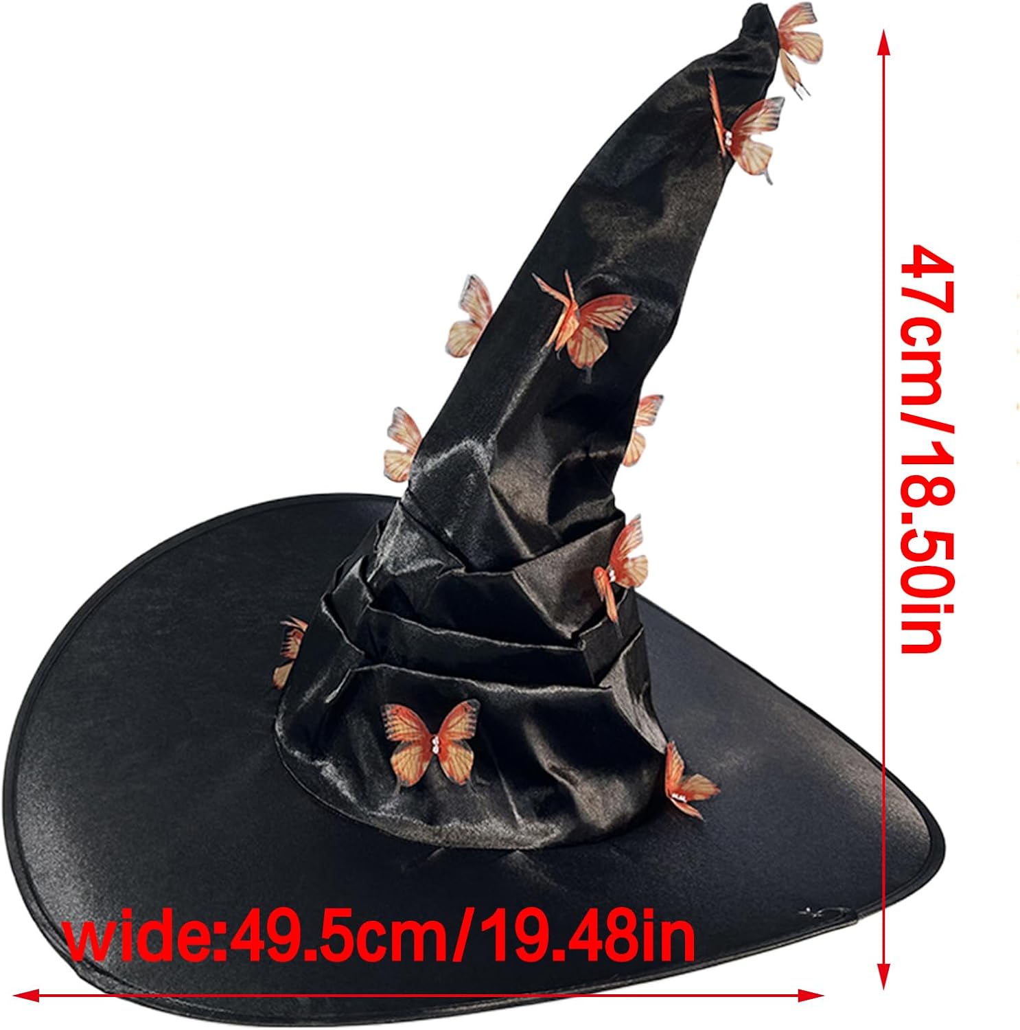 Cappello da strega per Halloween, Carnevale, Fotografia, Adulto, Cappello da strega con applicazione a farfalla, Cappello cosplay per adolescenti e adulti Caratteristiche: Questo cappello da strega a farfalla è per gli amanti di Halloween di tutte le età, in particolare donne e adolescenti. Realizzato in tessuto traspirante, questo cappello garantisce comfort durante l'uso. Adatto per feste di Halloween, giochi in costume e altre occasioni, aggiungendo un tocco di Halloween a qualsiasi outfit. Sta benissimo con questo cappello da strega, con applicazioni di farfalle. Preparati per il divertimento di Halloween con questo accogliente cappello da strega a farfalla, un capo indispensabile per la stagione. Caratteristiche: Tessuto: poliestere. Circonferenza del cappello: 54-60 cm. Colore: arancione, 1, filo arancione, 2. Il pacchetto include: 1 x cappello da strega di Halloween. Nota: 1. Si prega di consentire un errore di 1-2 cm dovuto alla misurazione manuale. Il colore dell'articolo può variare dalla foto a seconda delle impostazioni di visualizzazione e luminosità del computer.