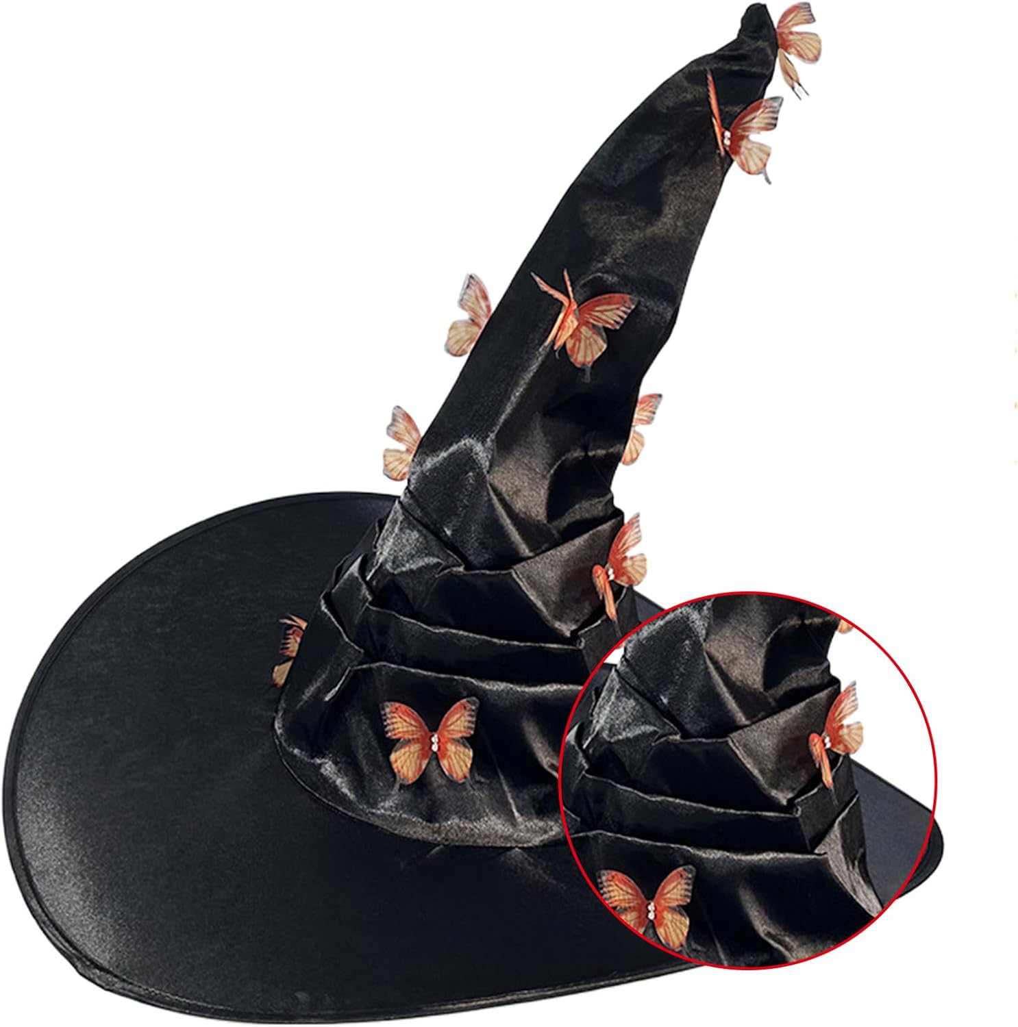 Cappello da strega per Halloween, Carnevale, Fotografia, Adulto, Cappello da strega con applicazione a farfalla, Cappello cosplay per adolescenti e adulti