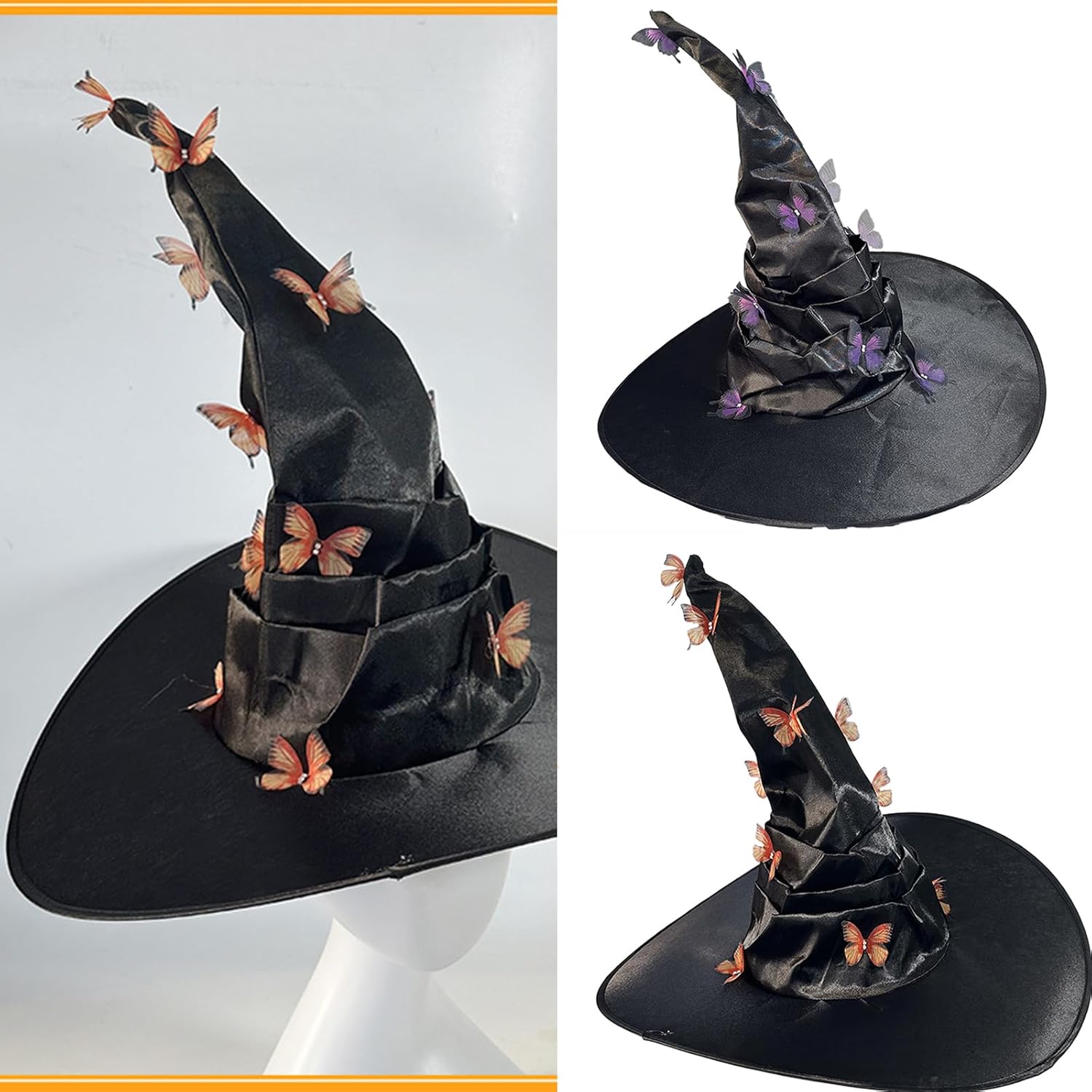 Cappello da strega per Halloween, Carnevale, Fotografia, Adulto, Cappello da strega con applicazione a farfalla, Cappello cosplay per adolescenti e adulti Caratteristiche: Questo cappello da strega a farfalla è per gli amanti di Halloween di tutte le età, in particolare donne e adolescenti. Realizzato in tessuto traspirante, questo cappello garantisce comfort durante l'uso. Adatto per feste di Halloween, giochi in costume e altre occasioni, aggiungendo un tocco di Halloween a qualsiasi outfit. Sta benissimo con questo cappello da strega, con applicazioni di farfalle. Preparati per il divertimento di Halloween con questo accogliente cappello da strega a farfalla, un capo indispensabile per la stagione. Caratteristiche: Tessuto: poliestere. Circonferenza del cappello: 54-60 cm. Colore: arancione, 1, filo arancione, 2. Il pacchetto include: 1 x cappello da strega di Halloween. Nota: 1. Si prega di consentire un errore di 1-2 cm dovuto alla misurazione manuale. Il colore dell'articolo può variare dalla foto a seconda delle impostazioni di visualizzazione e luminosità del computer.