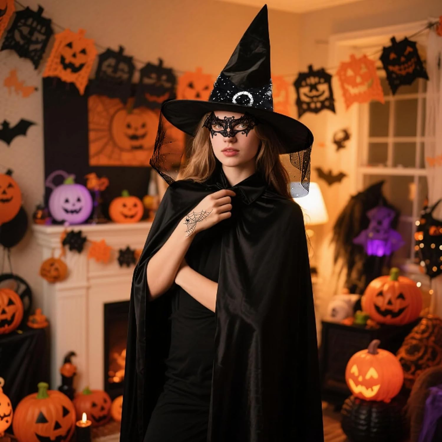 Questo set completo da strega per Halloween è la scelta ideale per chi cerca di stupire agli eventi più esclusivi. Con il cappello da strega nero, il mantello elegante e gli accessori coordinati, ti sentirai pronta per affrontare la notte più spaventosa dell'anno. Ogni elemento del set è pensato per darti un look perfetto e intrigante, sia che tu stia partecipando a una festa di Halloween, un ballo in maschera o un evento a tema. Non lasciare che il tuo costume passi inosservato – scegli il nostro set da strega e preparati a incantare tutti!